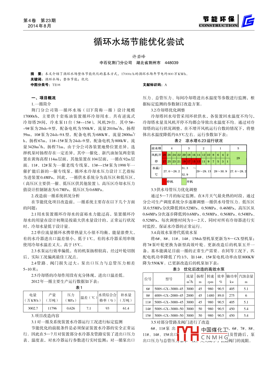循環(huán)水場節(jié)能優(yōu)化嘗試