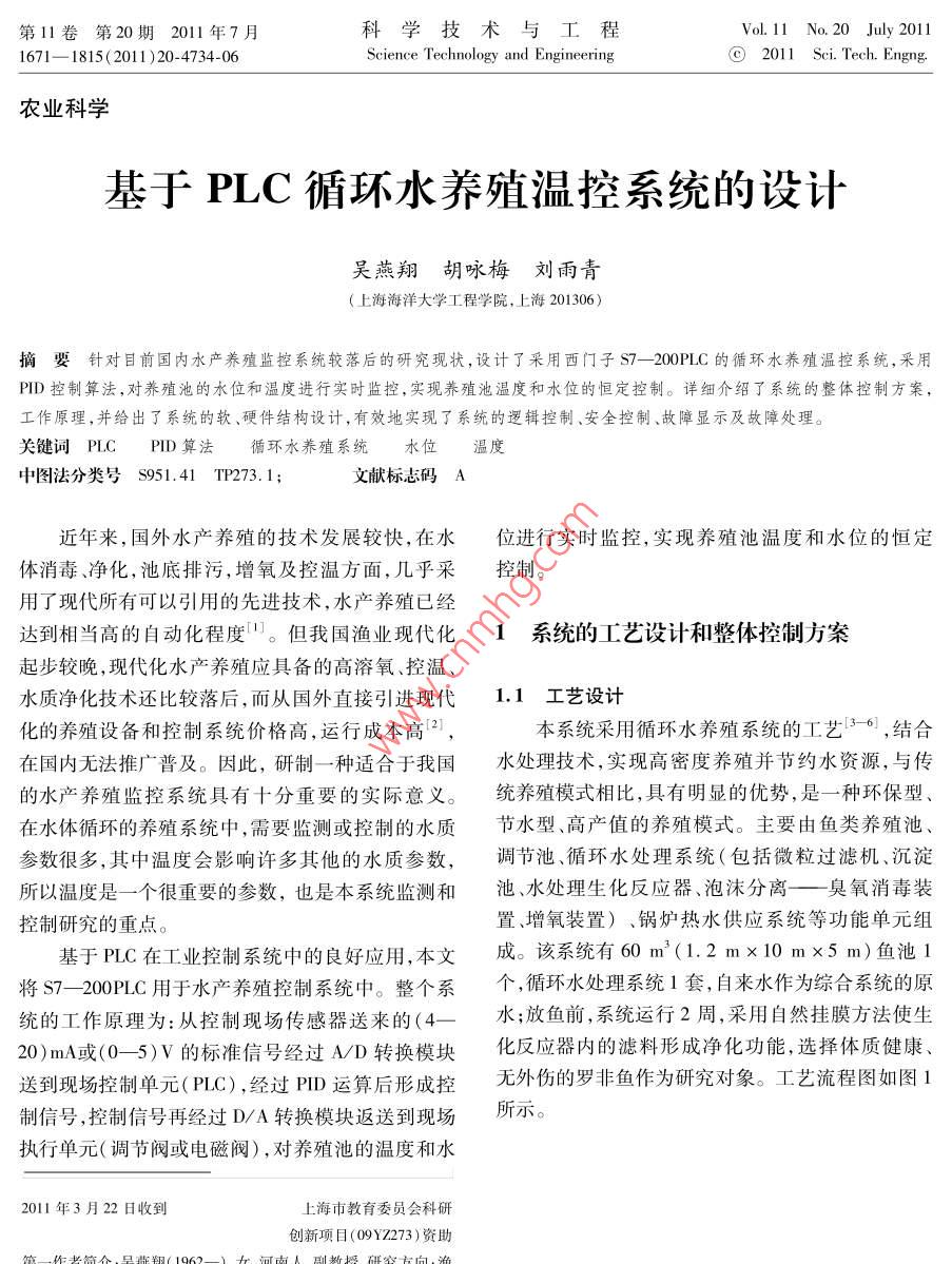 基于PLC循環(huán)水養(yǎng)殖溫控系統(tǒng)的設(shè)計(jì)