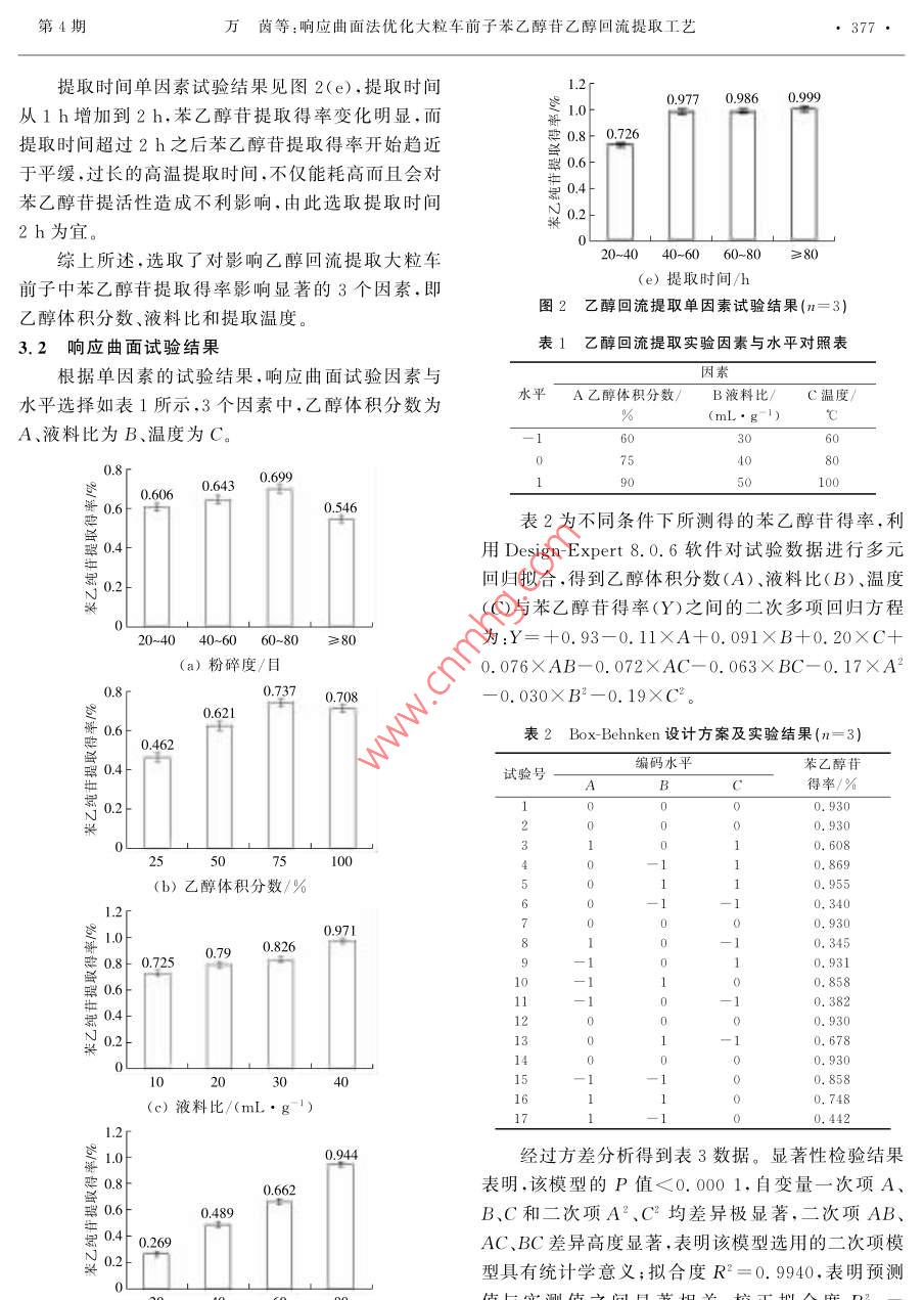 響應(yīng)曲面法優(yōu)化大粒車前子苯乙醇苷乙醇回流提取工藝