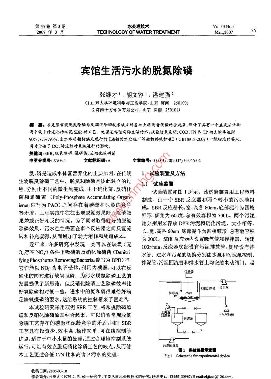 賓館生活污水的脫氮除磷