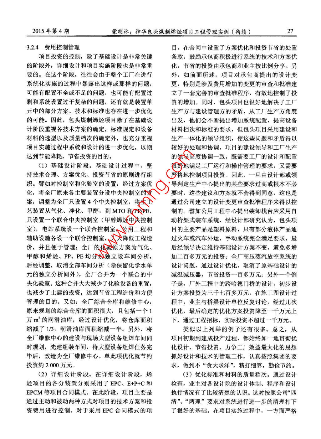 神華包頭煤制烯烴項目工程管理實例(待續(xù))