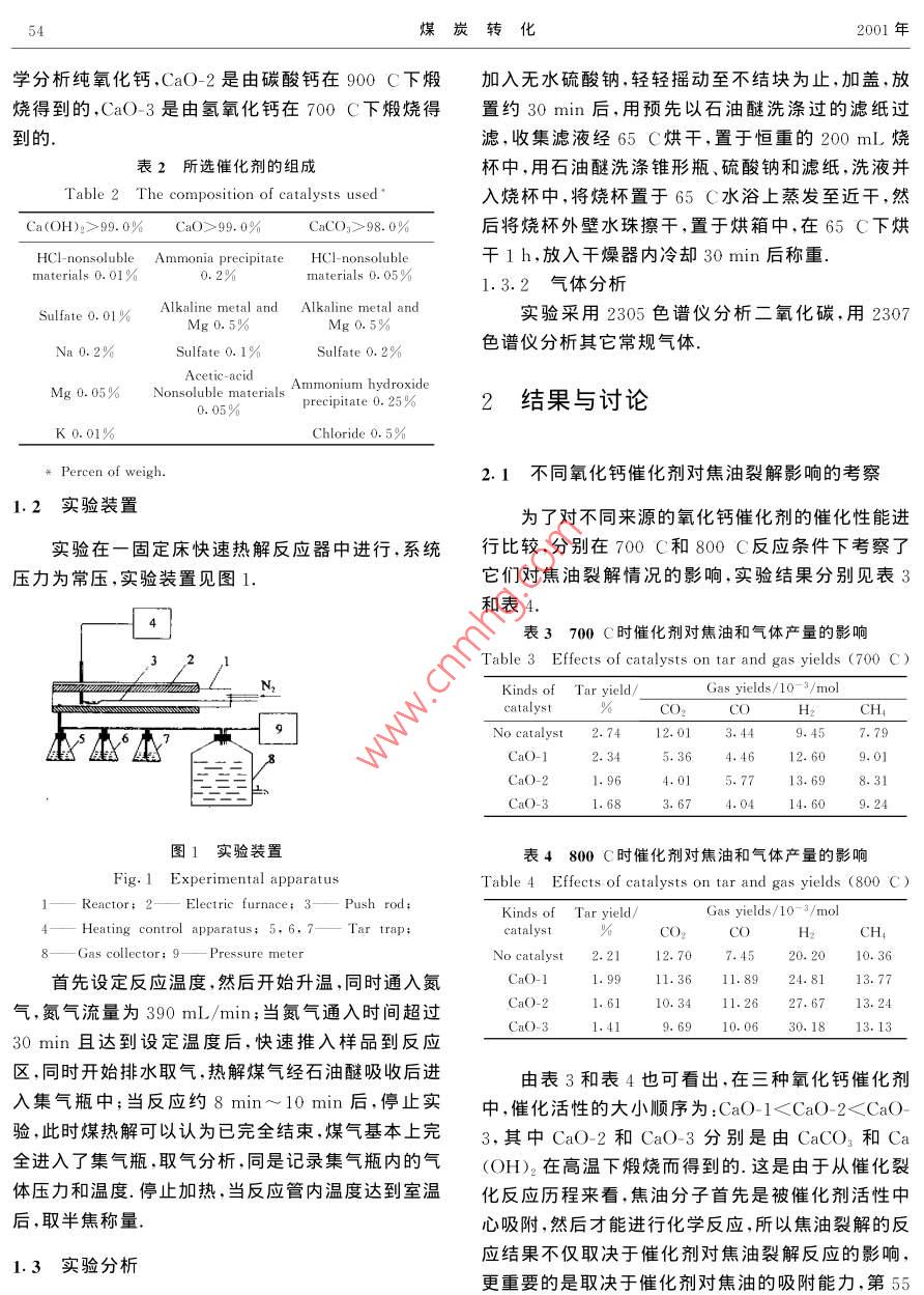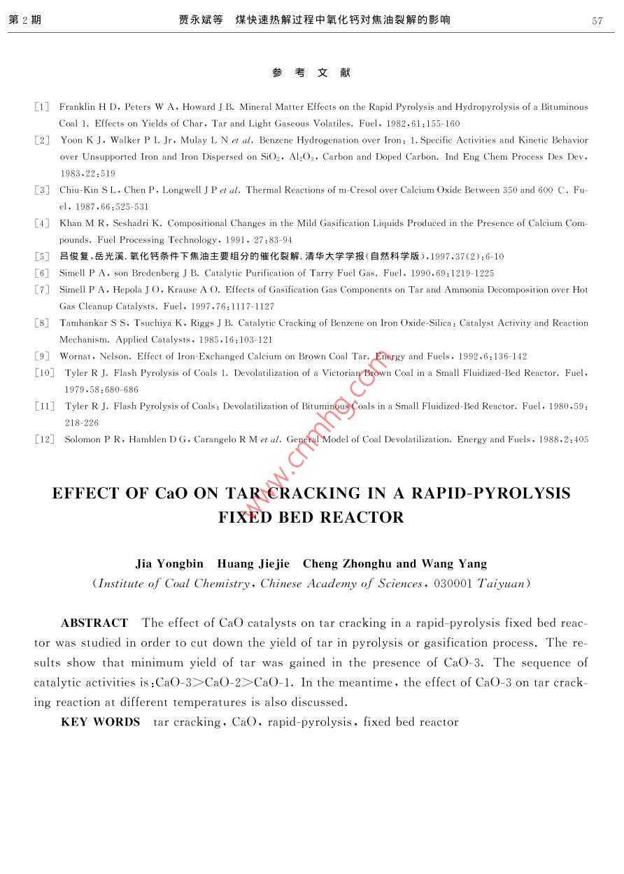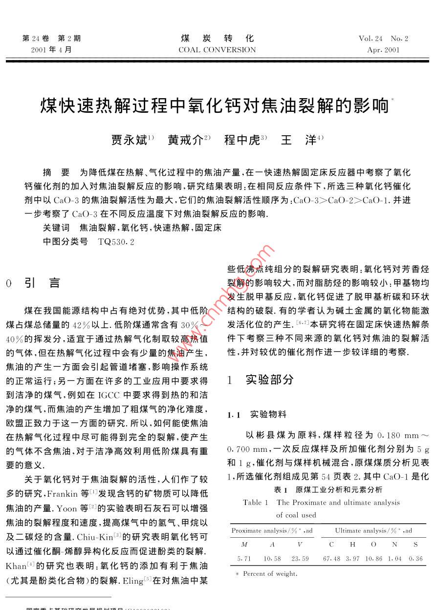 煤快速熱解過(guò)程中氧化鈣對(duì)焦油裂解的影響