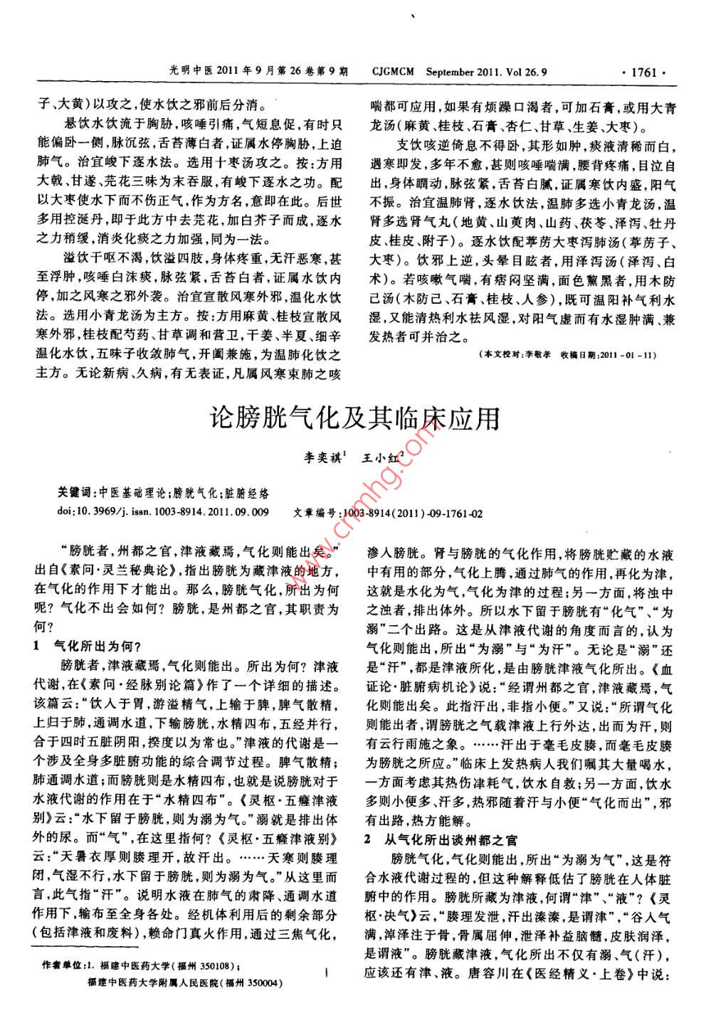論膀胱氣化及其臨床應(yīng)用