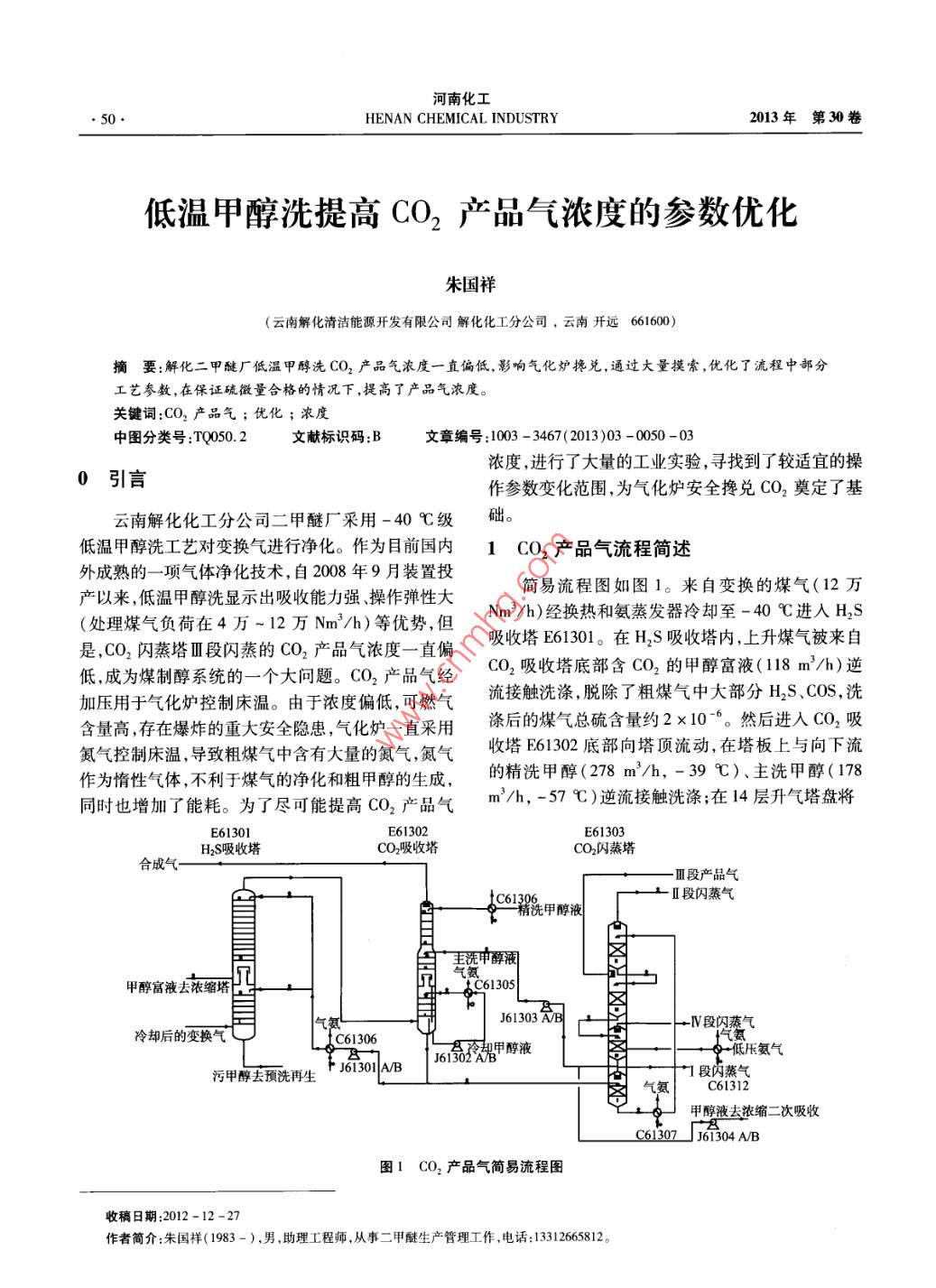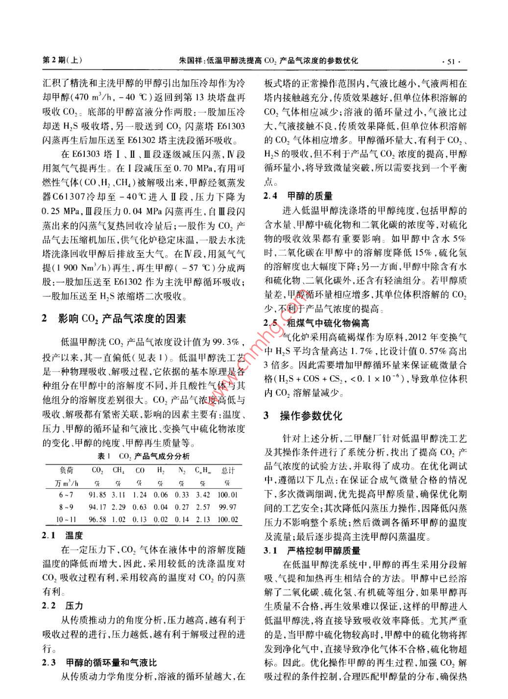 低溫甲醇洗提高CO2產(chǎn)品氣濃度的參數(shù)優(yōu)化