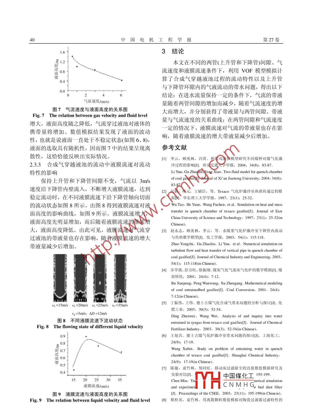 激冷室內(nèi)合成氣穿越液池過程流動特性與帶水問題