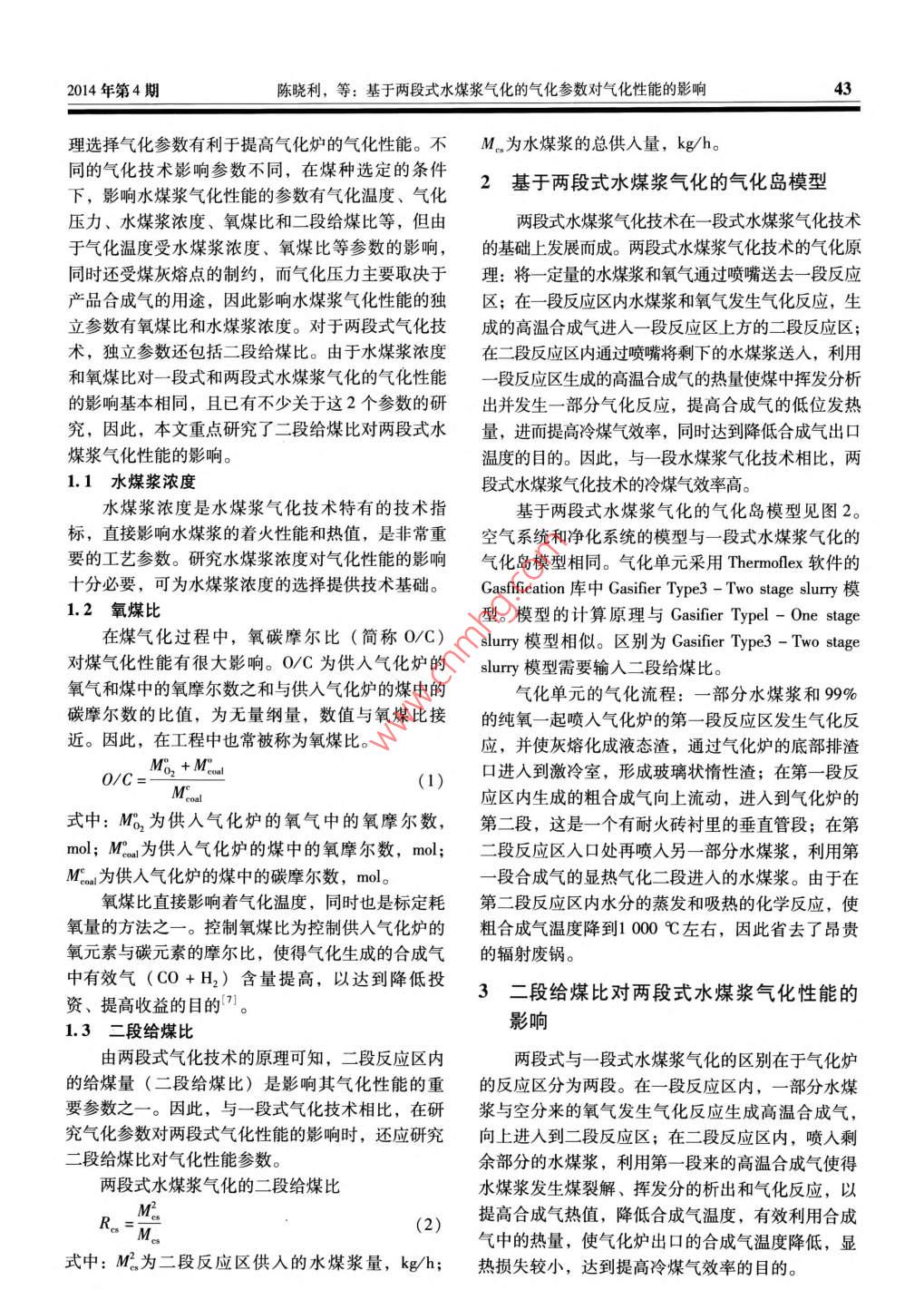 基于兩段式水煤漿氣化的氣化參數(shù)對(duì)氣化性能的影響