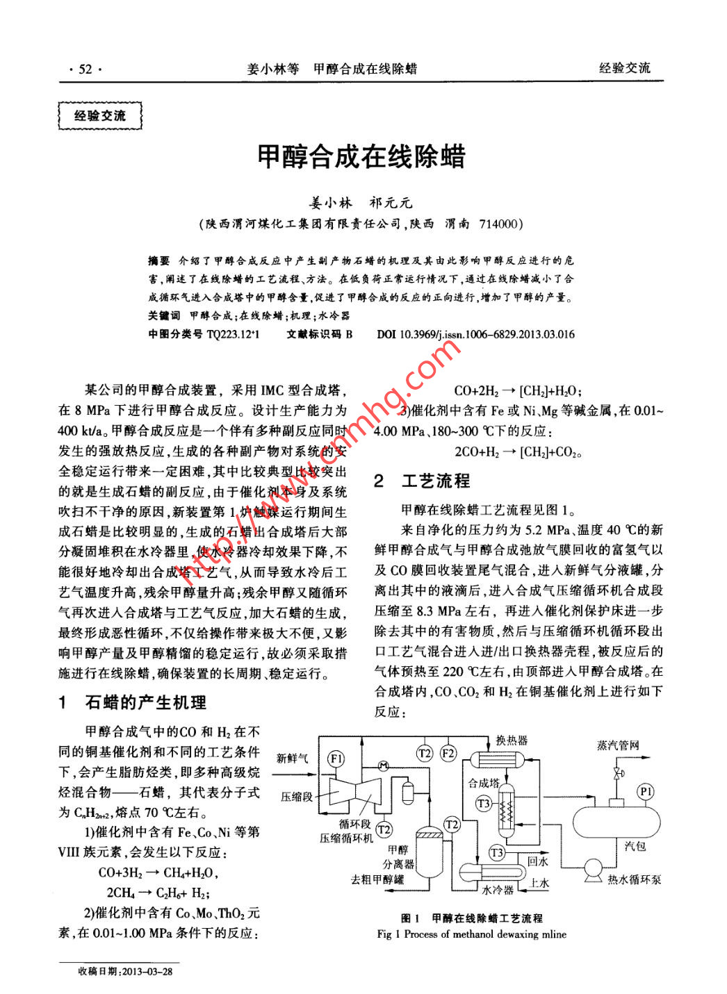 甲醇合成在線除蠟