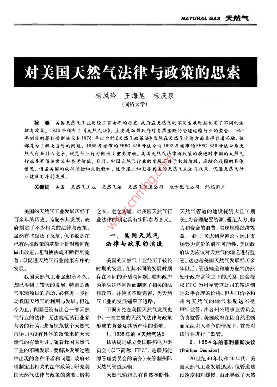 對(duì)美國(guó)天然氣法律與政策的思索