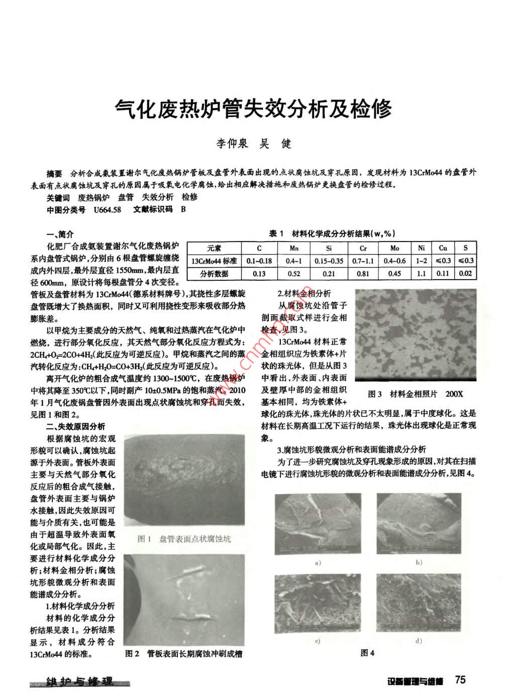 氣化廢熱爐管失效分析及檢修