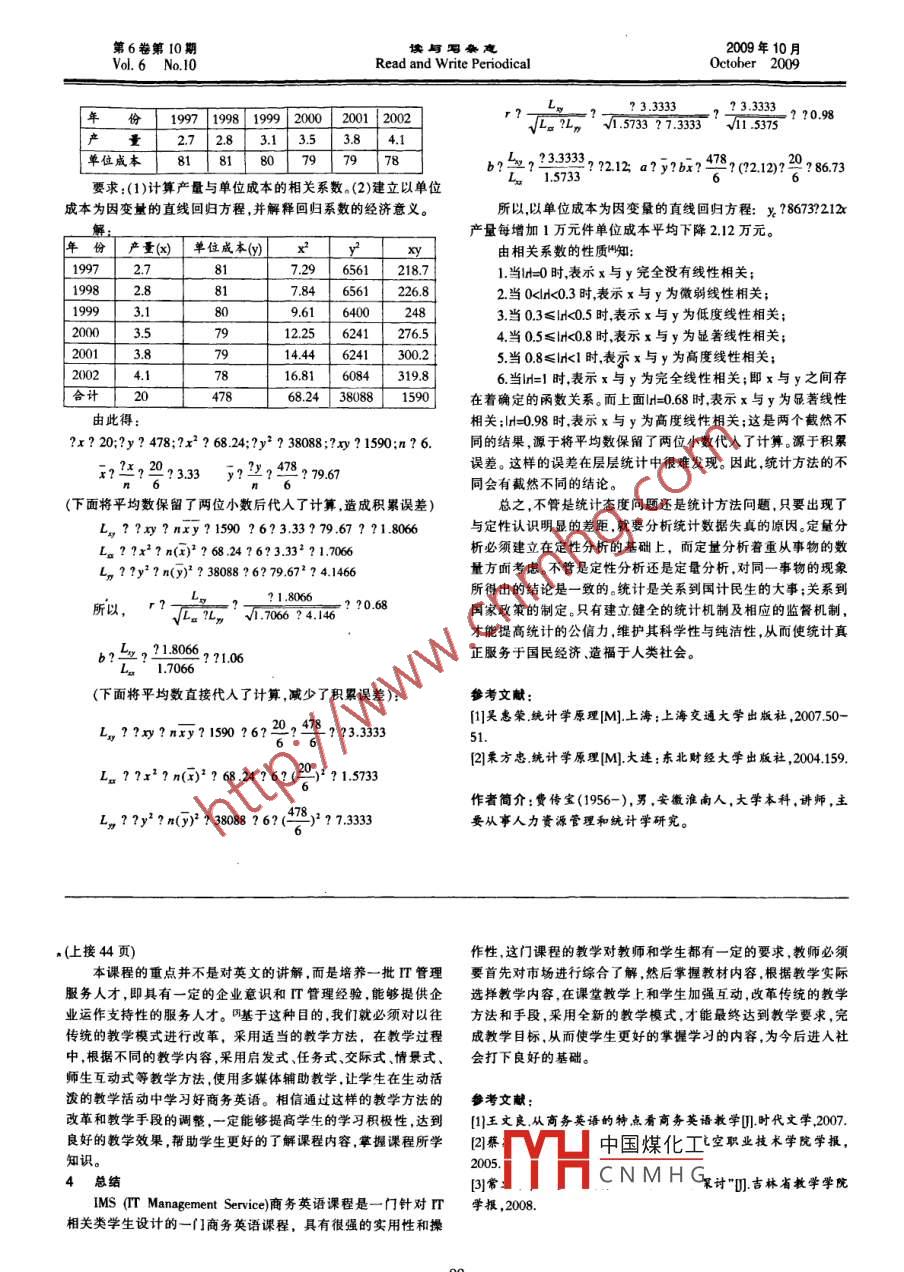 第6卷第10期讀與寫雜戀2009年10月Vol. 6 No.10Read and Write PeriodicalOctober 2009統(tǒng)計(jì)誤差分析費(fèi)傳寶(江蘇省鎮(zhèn)江市高等專科學(xué)校管理系江蘇鎮(zhèn)江212003)摘要:在信息時(shí)代,準(zhǔn)確而有效的信息往往給企業(yè)帶來財(cái)富。而信息的搜集需要一系列統(tǒng)計(jì)工作,在實(shí)際統(tǒng)計(jì)工作中,統(tǒng)計(jì)誤差在所難免。精度是統(tǒng)計(jì)調(diào)查的生命線,所以很有必要對(duì)統(tǒng)計(jì)誤差,特別是可以控制的非抽祥誤差要進(jìn)行深入、系統(tǒng)地探討。關(guān)鍵詞:隨機(jī)抽祥抽樣誤差 調(diào)查積累誤羞中圖分類號(hào): G642文獻(xiàn)標(biāo)識(shí)碼: A .文章編號(hào):1672-1578(2009)10 0087. -02在理論上,統(tǒng)計(jì)誤差中的抽樣誤差分為兩類,一類是工作性址 發(fā)生了完全的變化,如果依舊按以前的抽樣框去抽樣,那么精誤差又稱登記性誤差;另一類是代表性誤差。在代表性誤差中又度 就會(huì)非常難以控制。分為系統(tǒng)性誤差和隨機(jī)誤差"。而在實(shí)際統(tǒng)計(jì)工作中,統(tǒng)計(jì)誤差2.1.5輔助信息不正確是多種多樣的。有些誤差是可以避免的,有的誤差是不可以避免前面四種抽樣框誤差會(huì)發(fā)生在簡(jiǎn)單抽樣概也會(huì)發(fā)生在復(fù)雜的。下面我們就從這兩個(gè)方面展開分析和討論。抽樣框,而輔助信息不正確只可能出現(xiàn)在復(fù)雜抽樣框內(nèi)。一般,1統(tǒng)計(jì)誤差 中不可避免的誤差較大規(guī)模和較復(fù)雜的抽樣必須采用復(fù)雜抽樣框,就是必須要有隨機(jī)誤差是指在遵循了隨機(jī)原則的情況下抽到各種不同樣輔助信息。如果輔助信息不準(zhǔn)確,就會(huì)影響復(fù)雜抽樣的效果。本所產(chǎn)生的誤差,這種誤差是不可避免的誤差。不過.我們可以2.2 無回答誤差對(duì)它進(jìn)行事先計(jì)算并設(shè)法加以控制。通常在抽樣推斷中所說的所謂的無回答誤差就是指數(shù)據(jù)丟失,數(shù)據(jù)丟失的原因有兩抽樣誤差就是指這種隨機(jī)誤差,即假設(shè)不存在登記性誤差和系種,一是有意不回答,二是無意不回答。有意識(shí)不回答,主要是指統(tǒng)性誤差的情況下,僅考慮由于抽樣的隨機(jī)性而產(chǎn)生的樣本估被調(diào)查者拒絕訪問或拒絕就某-一個(gè)問題給予回答。無意識(shí)不回計(jì)量與總體參數(shù)之間的代表性誤差。影響抽樣誤差大小的因素箸則叮能受訪者不在家或者是訪問者疏忽,導(dǎo)斂數(shù)據(jù)遺漏。無回有四個(gè)方面:答誤差產(chǎn)生的原因有很多,歸納起來的話有以下幾點(diǎn):1.1總體各單位標(biāo)志值的差異程度2.2.1抽樣遺漏在總體中各單位標(biāo)志值得差異程度越大,抽樣誤差就越大;所謂抽樣遺滿的概念就是抽樣過程中沒有抽到一些本應(yīng)調(diào)反之,總體各單位標(biāo)志值的差異程度越小,抽樣誤差就越小。查的抽樣單位.這在郵寄調(diào)查中最普遍。郵寄調(diào)查最大的缺陷就1.2抽樣單位數(shù)的多少是愿意回答和不愿意問答的人有不同的特征值,而不愿意調(diào)查在隨機(jī)抽樣中.如果抽取的樣本單位數(shù)越多,抽樣誤差就越人群中有相當(dāng)部分應(yīng)該在被調(diào)查的范圍以內(nèi)。這種誤差產(chǎn)生的小;反之,抽取的樣本單位數(shù)越少,抽樣誤差就越大。后果是比較嚴(yán)重而且非常難以調(diào)整的。1.3抽樣方法2.2.2無法查找到被訪對(duì)象在隨機(jī)抽樣中,不重復(fù)抽樣(又稱為無放回抽樣)比重復(fù)抽無法查找最主要的原因是被訪對(duì)象的地址不確切或者已經(jīng)樣(又稱為有放回抽樣)的誤差要小。遷移,導(dǎo)致無法尋找到被訪對(duì)象。1.4抽樣調(diào)查的組織形式2.2.3雖然已經(jīng)接觸到被訪者,但因?yàn)榉N種原因被迫放棄調(diào)查在隨機(jī)抽樣中,-般有簡(jiǎn)單隨機(jī)抽樣(又叫純隨機(jī)抽樣);類被迫放棄的原因很多,首先是訪向者拒訪,這占了被迫放棄型抽樣(又叫分層抽樣);等距抽樣(又叫機(jī)械抽樣);整群抽樣。誤差的絕大多數(shù)。另外被迫放年還有幾種可能,比如被訪者因?yàn)樵陬愋统闃又兴a(chǎn)生的抽樣誤差較小,其次是等距抽樣;在簡(jiǎn)單健康原因不能接受或完全接受采訪。隨機(jī)抽樣和整群抽樣中所產(chǎn)生的抽樣誤差較大。2.3計(jì)量誤差2統(tǒng)計(jì)誤差 中可以避免的誤差計(jì)負(fù)誤差可以分為三類,- -是問卷設(shè)計(jì)階段產(chǎn)生的誤差,二2.1抽樣框誤差是調(diào)查階段產(chǎn)生的誤差.三是其他誤差。所謂的抽樣框誤差指目標(biāo)總體和抽樣樣本不一致時(shí)產(chǎn)生的2.3.1問卷設(shè)計(jì)產(chǎn)生的誤差誤差。屬于系統(tǒng)性誤差,這是違背了隨機(jī)原則造成的。理想的抽這種誤差屬 于工作性誤差,主要來自于不同措辭的不同表樣框需要滿足以下要求,就是所有的抽樣單位必須覆蓋目標(biāo)總達(dá)。包括文字表達(dá)本身產(chǎn)生歧意,文字表達(dá)不夠簡(jiǎn)練等等。問卷體,抽樣框誤差有五個(gè)來源,分別是:設(shè)計(jì)階段另外一個(gè)誤差來源就是,問卷設(shè)計(jì)過長(zhǎng),導(dǎo)致訪問者疲2.1.1不能覆蓋目標(biāo)總體單位勞而產(chǎn)生數(shù)據(jù)失真的現(xiàn)象。所謂的不能覆蓋目標(biāo)總體單位,指的是目標(biāo)總體單位沒有2.3.2調(diào)查階段產(chǎn)生的誤差出