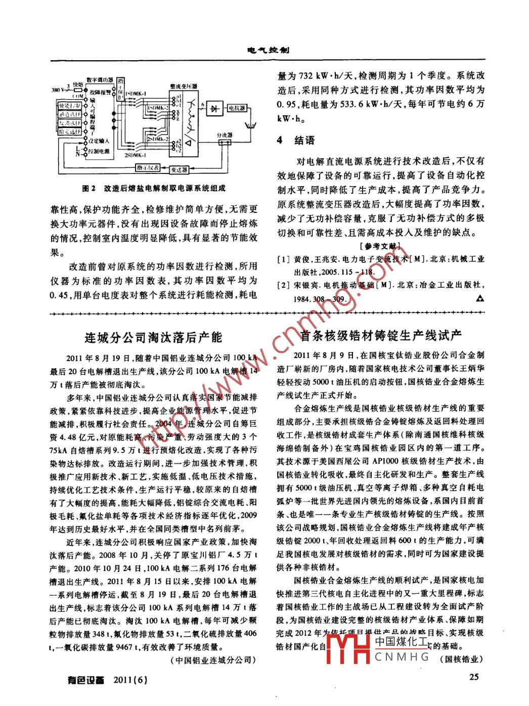 熔鹽電解電源系統(tǒng)的節(jié)能改造