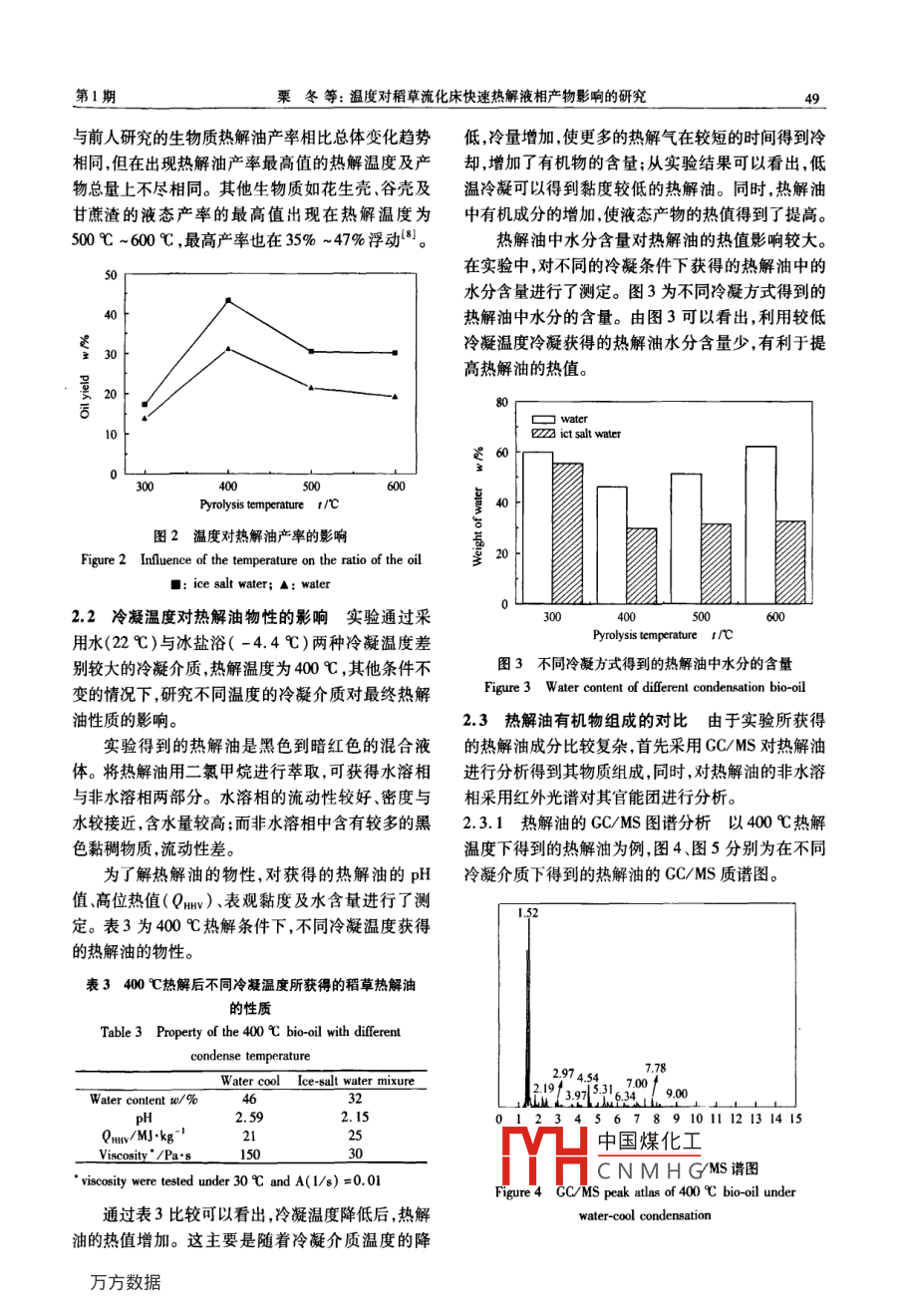 溫度對稻草流化床快速熱解液相產(chǎn)物影響的研究