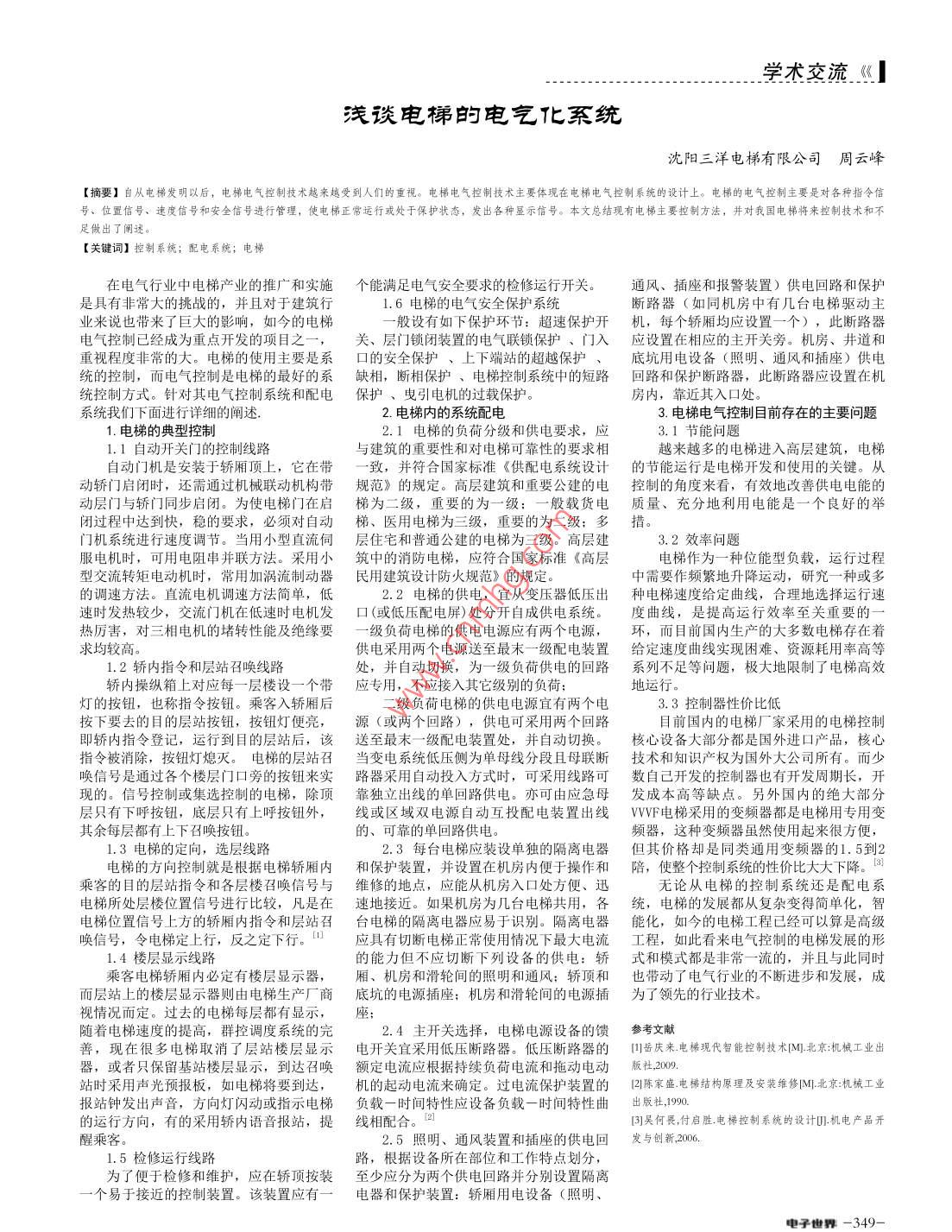 淺談電梯的電氣化系統(tǒng)