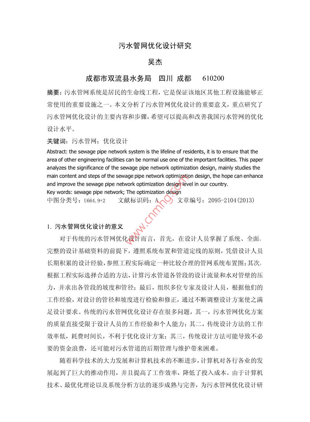 污水管網(wǎng)優(yōu)化設(shè)計(jì)研究