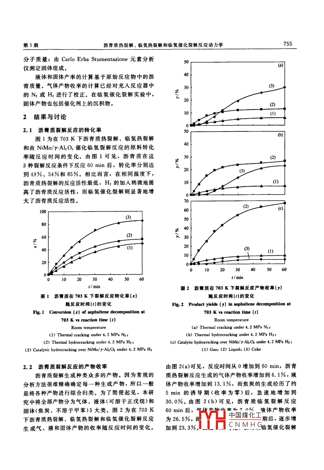 瀝青質(zhì)熱裂解、臨氫熱裂解和臨氫催化裂解反應(yīng)動力學(xué)