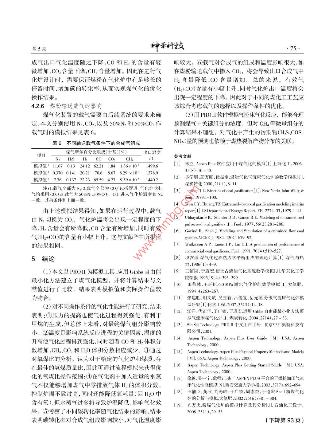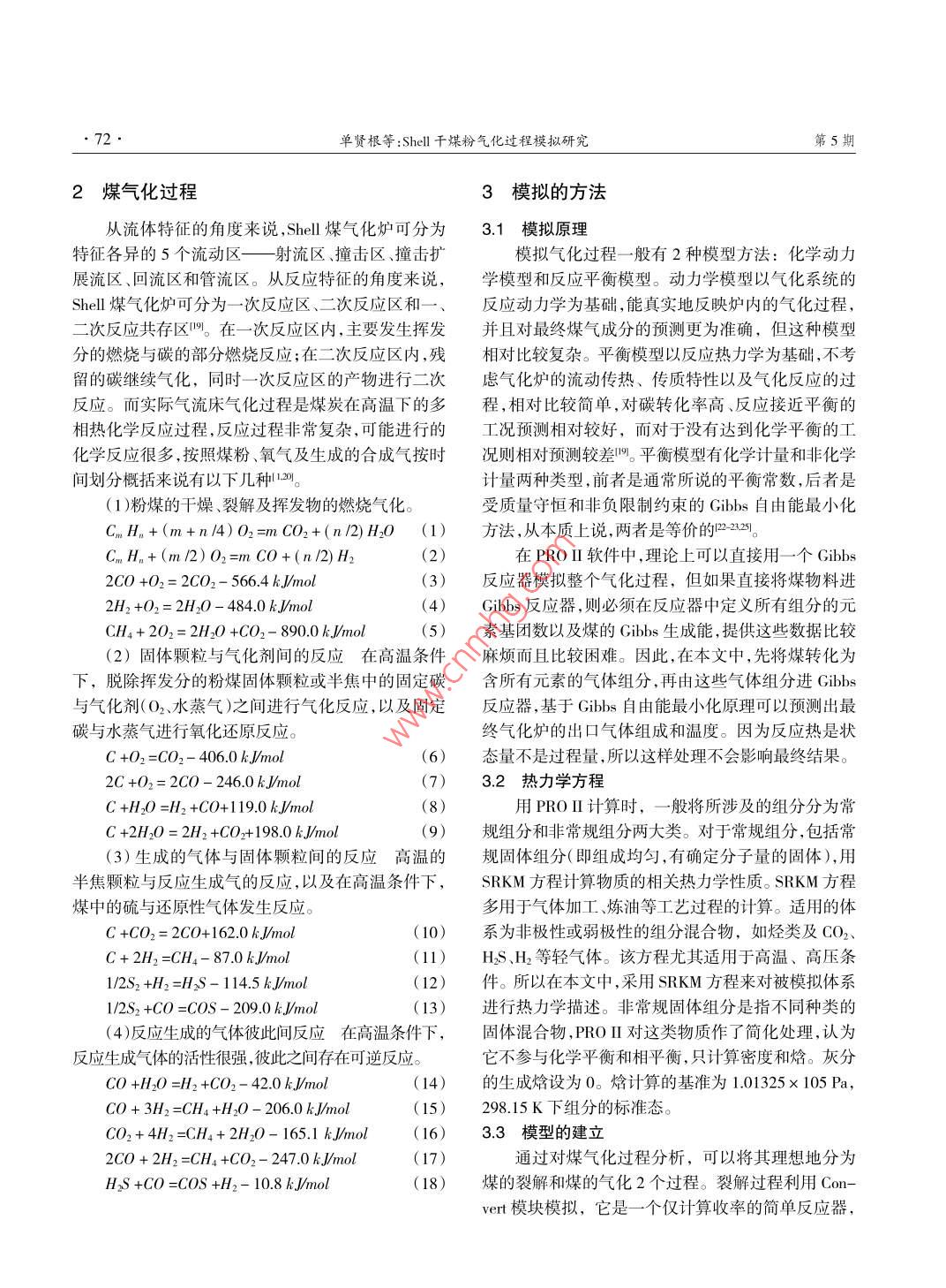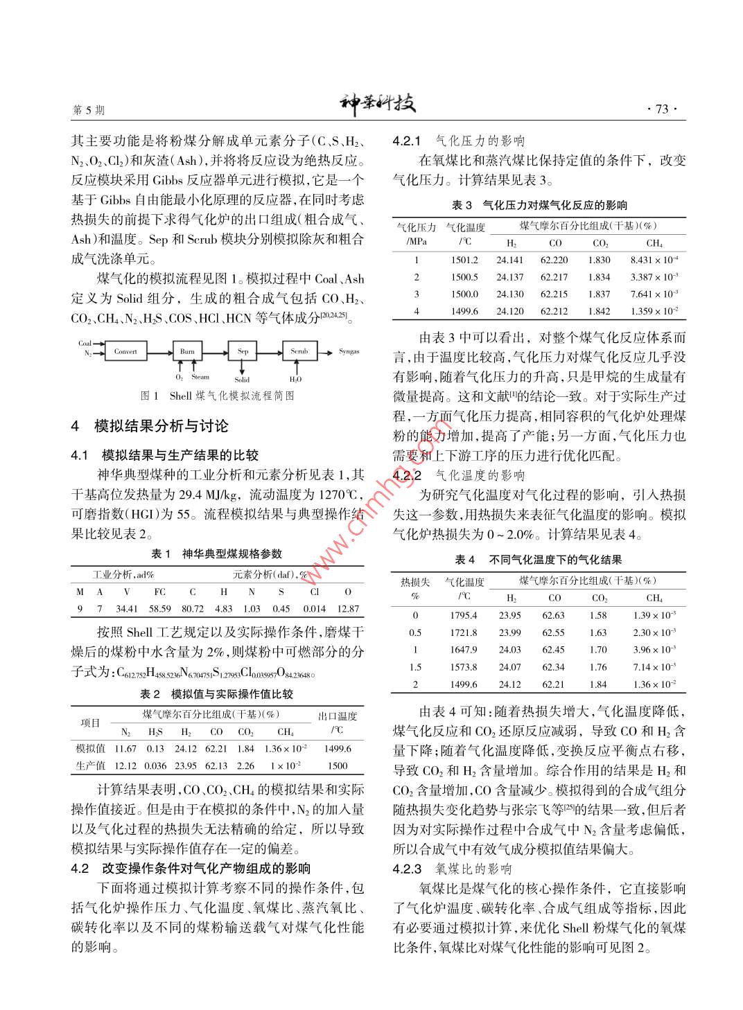 Shell干煤粉氣化過程模擬研究