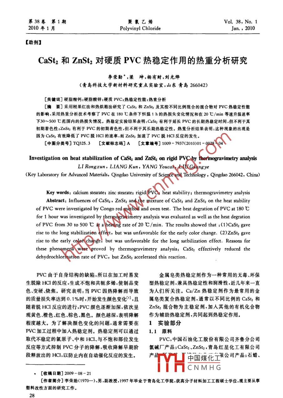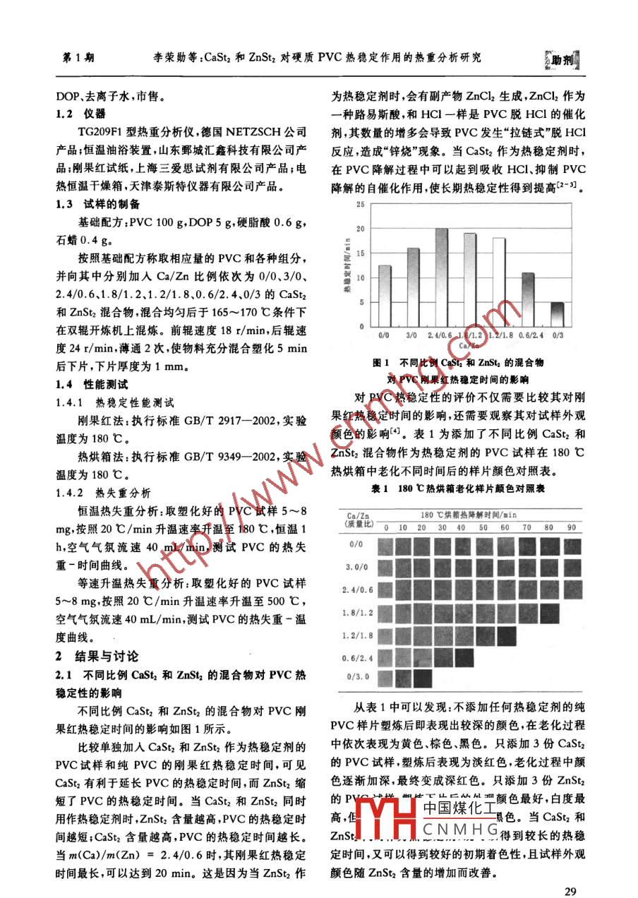 CaSt2和ZnSt2對(duì)硬質(zhì)PVC熱穩(wěn)定作用的熱重分析研究