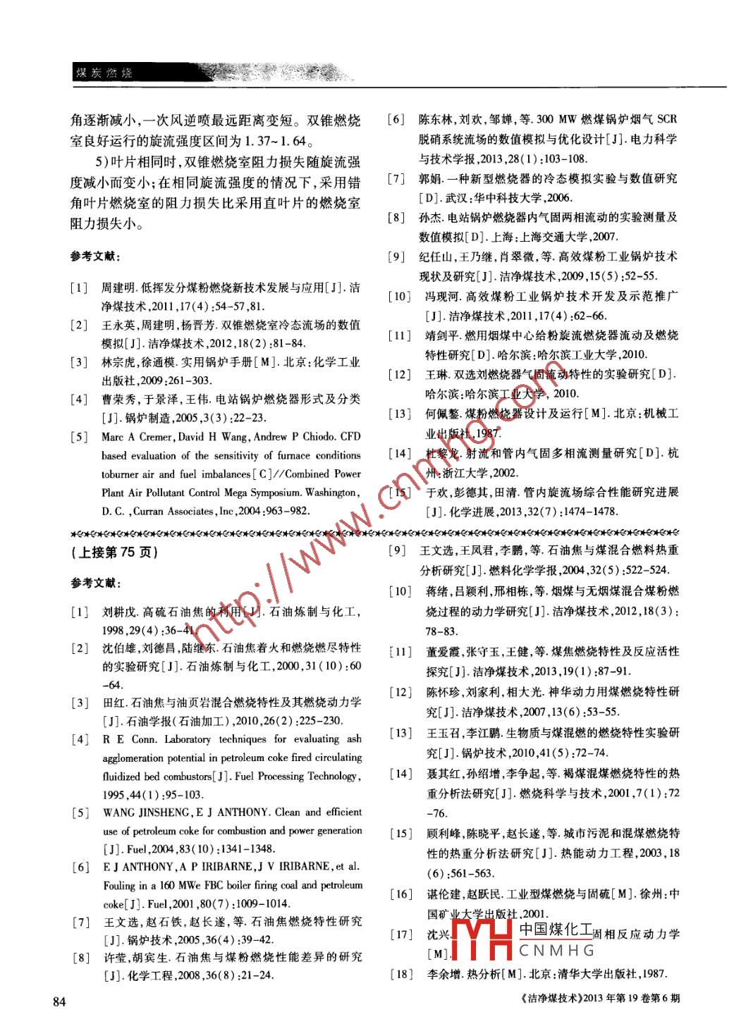 煤炭燃燒科技心期刊礦業(yè)類核心期刊問焦寫燒啥動動學(xué)廖正祝,田紅(廣東石油化工學(xué)院機電工程學(xué)院,廣東茂名525000)摘要:以石油焦與煤的混合燃料為研究對象,采用TG-DTG-DSC聯(lián)用實驗技術(shù)對混合試樣進行了燃燒熱重實驗。分析了混燒特性曲線,計算了各個燃燒特性指數(shù),并采用差減微分法 Freeman-Caro計算了燃燒反應(yīng)動力學(xué)參數(shù)。結(jié)果表明:各混合試樣均只出現(xiàn)一個位于高溫區(qū)段的DTG曲線峰和方向向下的DSC曲線的熱量釋放峰,混合試樣的燃燒過程主要是高溫階段焦炭的著火燃燒過程;混合試樣S2,S3及S5熱量釋放相對較少且不集中,燃燒時間長且不完全;混合試樣及6的熱量釋放集中且時間短,燃燒釋放的熱量相對較多;煙渫含量最多的混合試樣所6的著火特性、燃盡特性指數(shù)及綜合燃燒特性參數(shù)均高于其它混合試樣以及石油焦的各個相應(yīng)值,且試樣S6的可燃特性指數(shù)也大于石油焦的可然特性指數(shù);混合試樣活化能均小于石油焦燃燒的活化能,混合試樣比石油焦更易著火燃燒;只要石油焦與煤的混合比例適當(dāng),石油焦摻燒煙煤后的燃燒特性優(yōu)于石油焦單獨燃燒特性,此為解決石油焦難以單獨燃燒利用提供了方法。關(guān)鍵詞:石油焦;煤;燃燒;動力學(xué);熱重試驗中圖分類號:TE992;TD849文獻標(biāo)識碼:A文章編號:1006-6772(2013)06-0071-05Co-combustion thermogravimetric experimental study of petroleum coke and coalLAO Zhengzhu, TIAN HongCollege of Mechanical and Electrical Engineering, Guangdong University of Petrochemical Technology, Maoming 525000, China)Abstract: Taking the mixed fuel of petroleum coke and coal as research object, do the thermogravimetric experimentusing the TG-DtG-DSC thermogravimetric-differential thermogravimetric-differential scanning calorimetrythermal analysis technology, investigate the co-combustion characteristics curves and calculate thee vanetycombustion characteristics index. Compute the combustion kinetic parameters by suing subtractive differentialmethod Freeman-Carroll. The results indicate that the every mixed fuel has a single DtG curve of peaks and thedownward DSC curve of exothermic peak at the high temperature. The mixed fuel combustion process is the ignitionand combustion process of coke at the high temperature. The heat release of the mixed samples of $2, $3 and S5 arerelatively small and not concentrated, and the time of combustion process is long and the combustion is incompleteThe heat release of the mixed samples of S4 and S6 are relatively larger and the heat released time is short. Theignition characteristics index, the burnout characteristics index and the synthetic combustion characteristicsparameters of the mixed fuel $6 having the most bituminous coal content are higher than the corresponding values ofthe other mixed samples and petroleum coke, the combustible characteristics index of mixed sample s6 is larger thanthe corresponding value of petroleum coke. The activation energy of all the mixed feuls are less than that ofpetroleum coke, and the mixed samples are easier igniting combustion than petroleum coke. The proper mixing ratioof petroleum coke and coal leads to great mixed fuels co-combustion characteristics, which is better than the purecombustion characteristics of petroleum coke. The study provides theoretical guidance for the combustion utilizationam cokeKey words: petroleum coke; coal; combustion; kinetics; thermogravimetric experiment收稿日期:2013-09-05責(zé)任編輯:宮在芹YH中國煤化工基金項目:廠東省自然科學(xué)基金$2012010010448);「東省科技計龍(2018030項目(512119)作者簡介:廖正祝(1970—),女,四川會理人,工程師,主要從事燃料的燃燒及循環(huán)流化床CNMH引用格式:膠正祝,田紅石油焦與煤彩燒特性及動力學(xué)[冂.潔凈煤技術(shù),2013,19(6):71-75,84廖正祝等:石油焦與煤混燒特性及動力學(xué)71煤炭燃燒石油焦是石油提煉的最終副產(chǎn)品,具有低灰很好的利用方式,但目前對石油焦與煤混燒過程分、低揮發(fā)分、高碳、高熱值等特點。作為煤的一種的研究還不充分。本文采用非等溫?zé)嶂胤?利用補充或替代燃料用于鍋爐燃燒發(fā)電、供熱是石油焦TG-DTG-DSC聯(lián)用技術(shù)對石油焦與煙煤按照不同利用的重要途徑。石油焦單獨燃燒存在以下問質(zhì)量比進行混燒熱重實驗,對混合燃料各個燃燒特題:燃燒過程不穩(wěn)定,呈現(xiàn)多階段燃燒特點;燃燒特性進行了計算,采用差減微分法 Freeman- Carroll計性介于煙煤和無煙煤之間;燃燒熱解動力學(xué)參數(shù)受算了燃燒反應(yīng)動力學(xué)參數(shù)并進行分析,以期得出其升溫速率等實驗條件影響較大。由于石油焦揮發(fā)混燒特性。分含量少,故燃點高,且焦炭難以燃盡,石油焦存在難以單獨充分燃燒利用等問題26。石油焦含有1實驗硫、氮和釩、鎳等堿金屬元素,這使石油焦燃燒時造1.1實驗樣品成鍋爐內(nèi)腐蝕和污染,將石油焦與煤的混合燃料在實驗所用石油焦取自某煉油廠,煙煤取自某電循環(huán)流化床鍋爐里燃燒是一種高效、清潔利用石油廠。將各實驗樣品通過磨煤機研磨,再經(jīng)過篩分分焦的有效方法。無煙煤中加入石油焦后燃點降離,得到粒度小于0.074m的實驗樣品。將樣品低,燃燒效率得到提高。隨煤含量增多,煤與石放在恒溫干燥箱中,在378K干燥2h,取出放在干油焦的混燃燃點和燃盡溫度均逐漸降低隨石油焦燥器皿中冷卻后裝入密封袋備用。表1為實驗樣品含量增大,混燒活化能和頻率因子均增大{9。的工業(yè)分析及元
