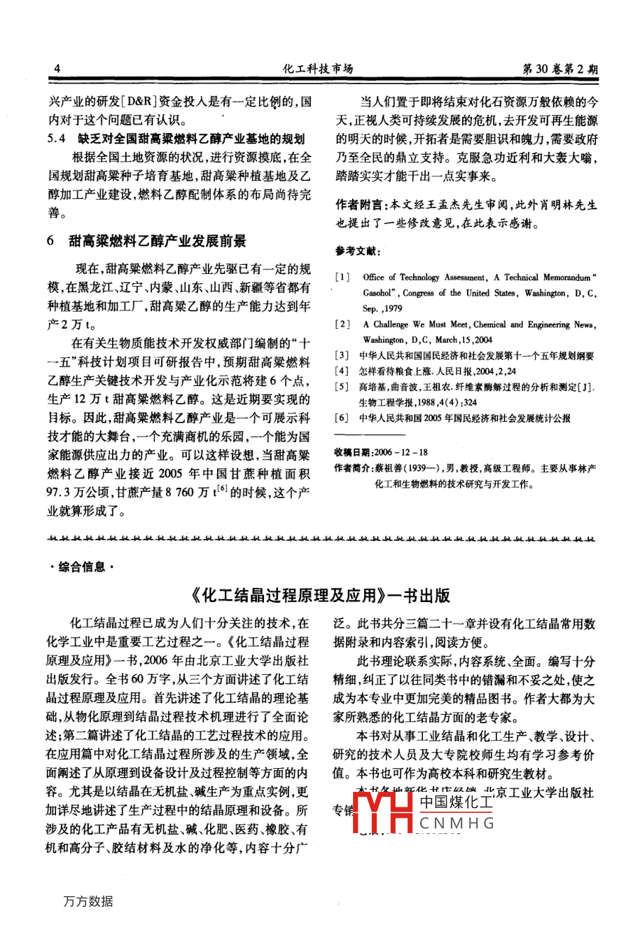 - 期刊名字:化工科技市場