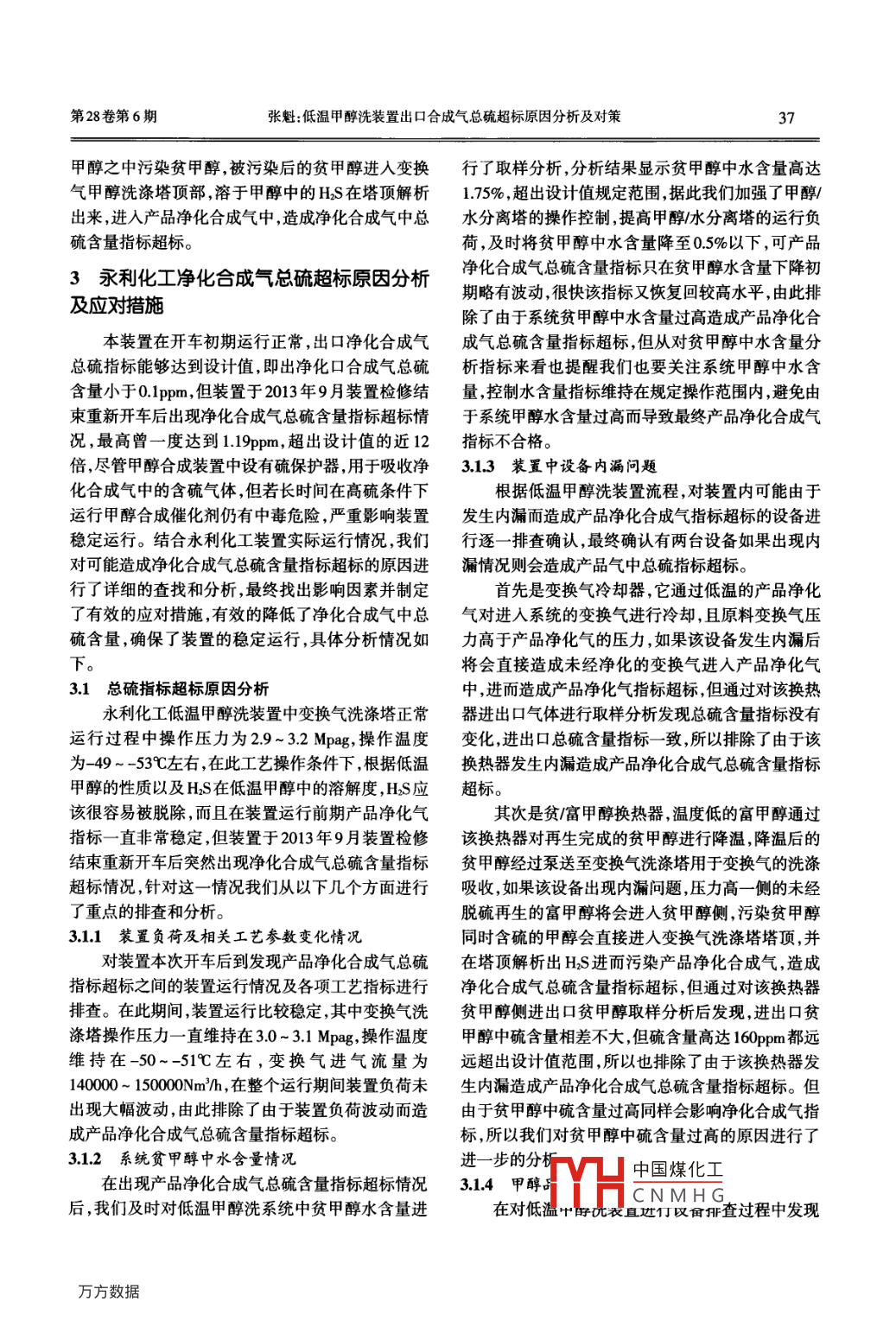 低溫甲醇洗裝置出口合成氣總硫超標原因分析及對策