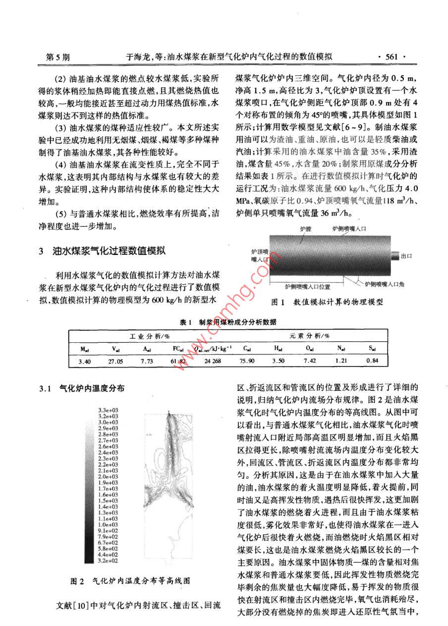 油水煤漿在新型氣化爐內(nèi)氣化過程的數(shù)值模擬
