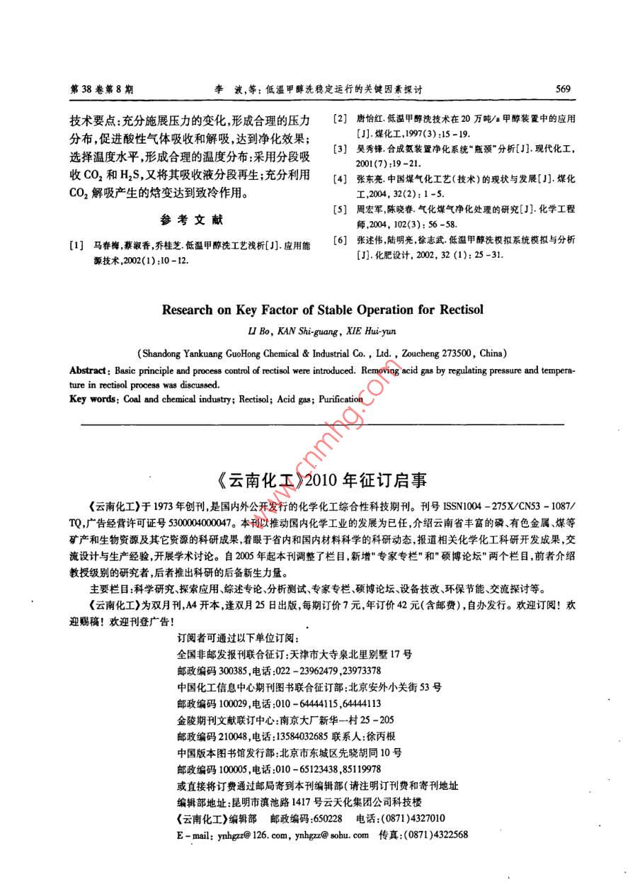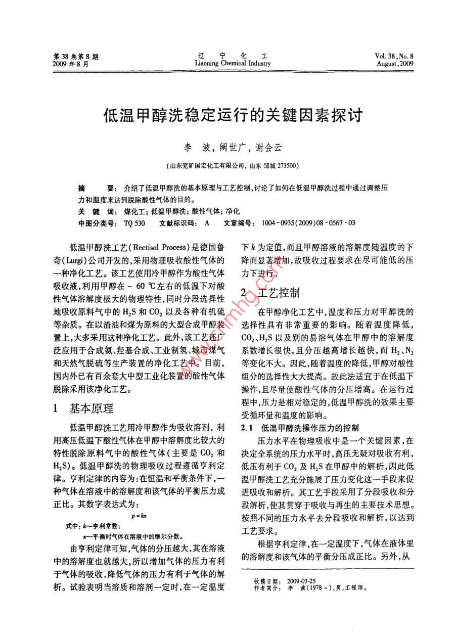 低溫甲醇洗穩(wěn)定運行的關鍵因素探討