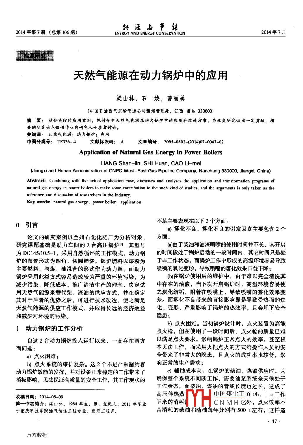- 期刊名字:能源與節(jié)能