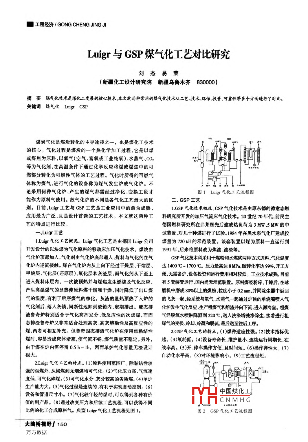 Luigr與GSP煤氣化工藝對(duì)比研究