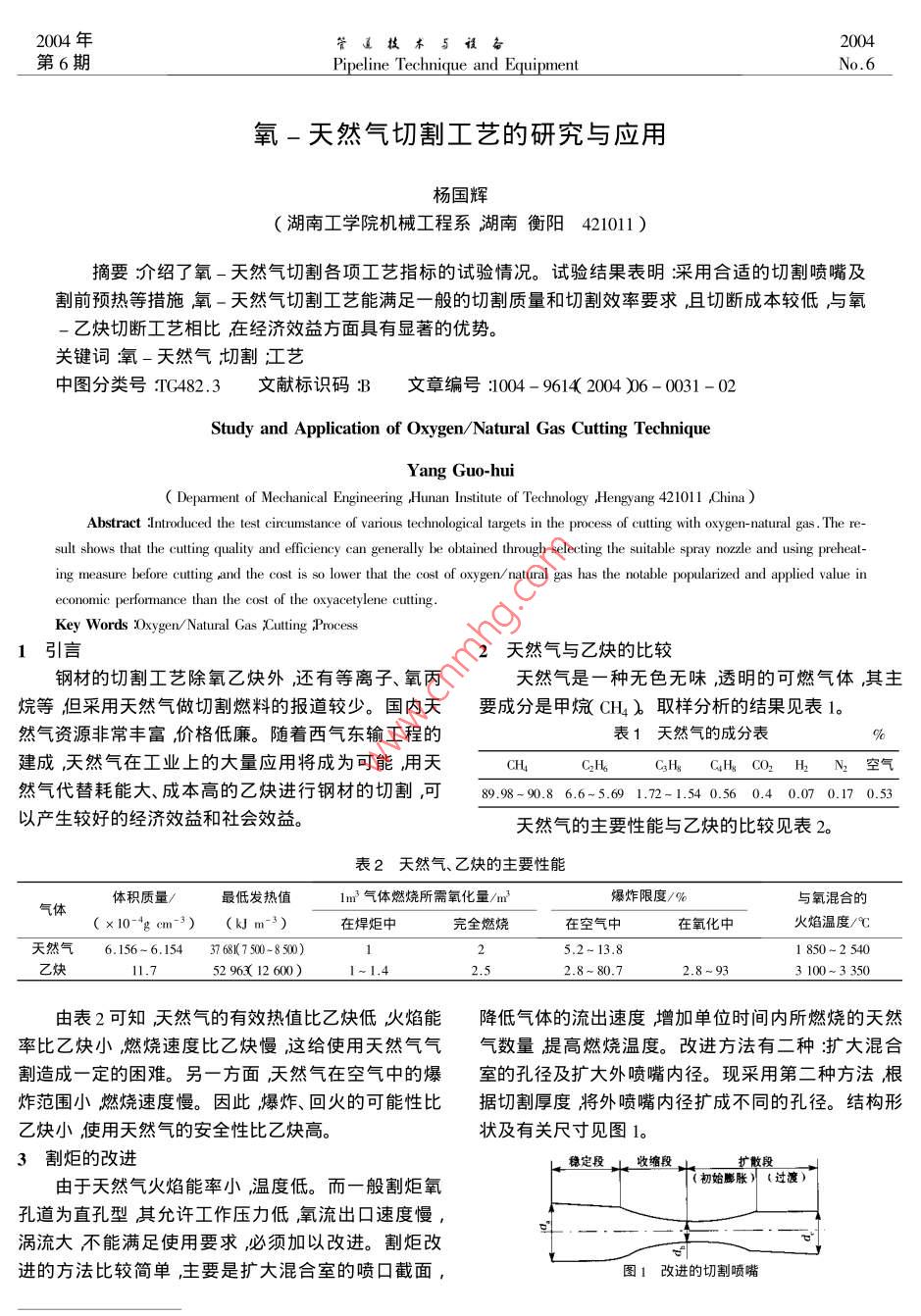 氧-天然氣切割工藝的研究與應(yīng)用