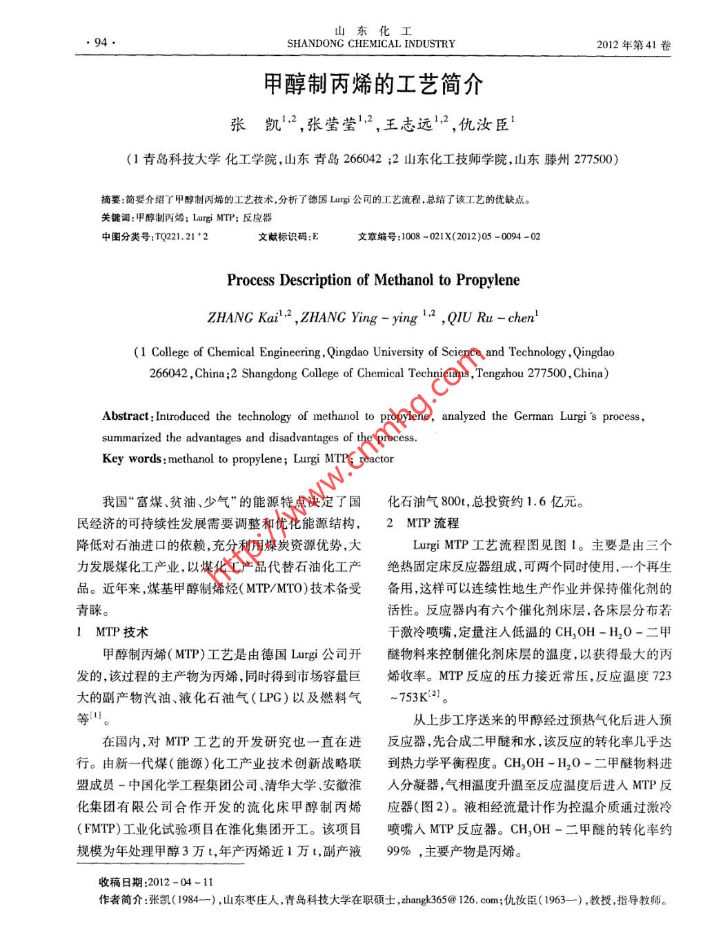 - 期刊名字:山東化工