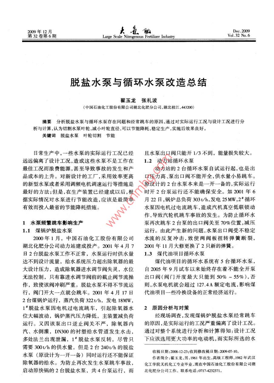 脫鹽水泵與循環(huán)水泵改造總結(jié) 脫鹽水泵與循環(huán)水泵改造總結(jié)