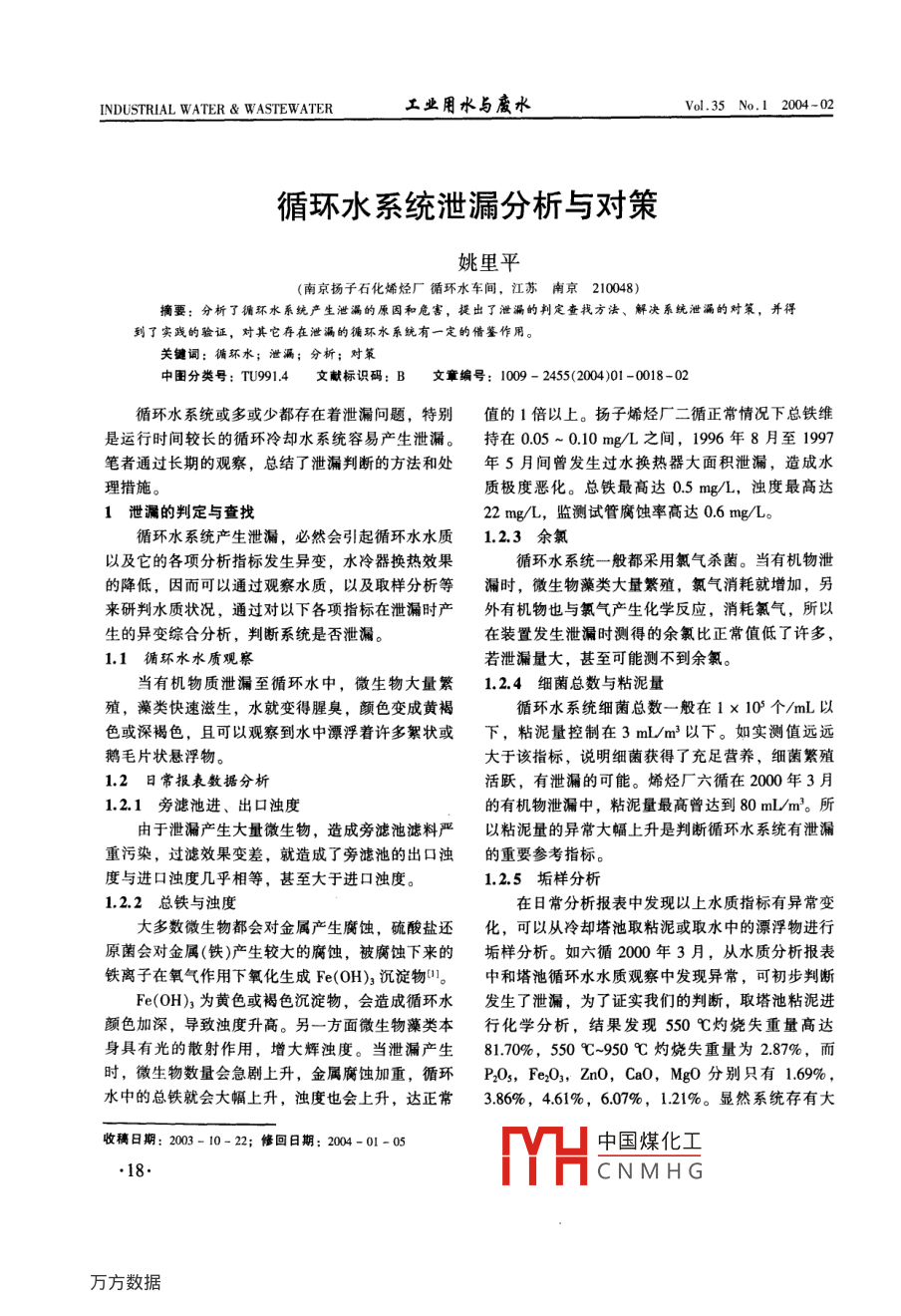 - 期刊名字:工業(yè)用水與廢水