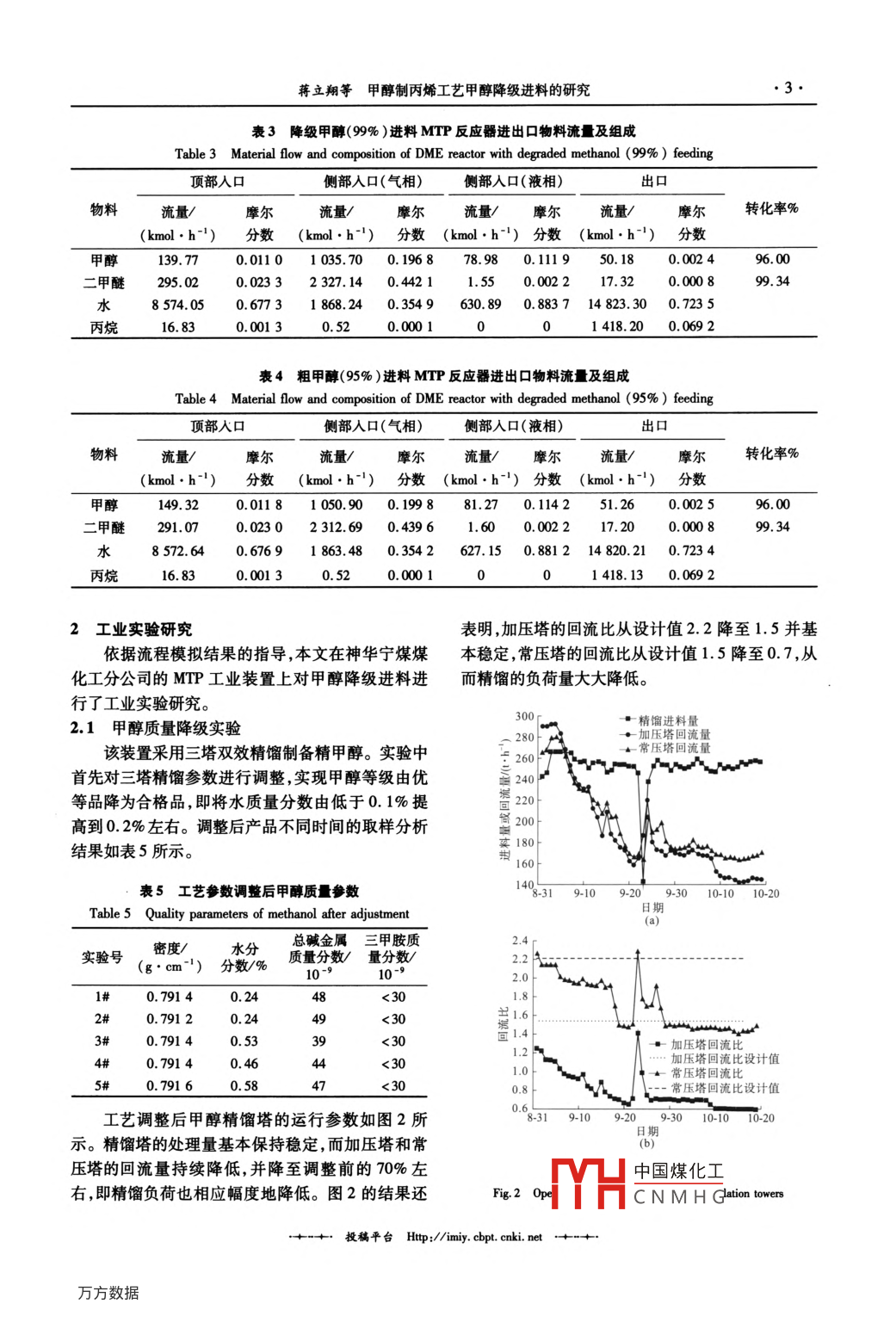 甲醇制丙烯工藝甲醇降級進料的研究