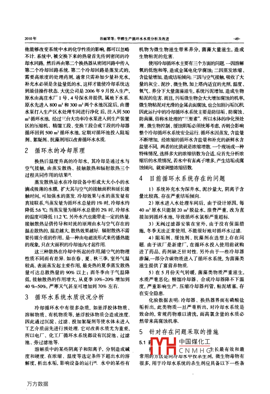 甲醇生產(chǎn)循環(huán)水水質(zhì)分析及改進(jìn)