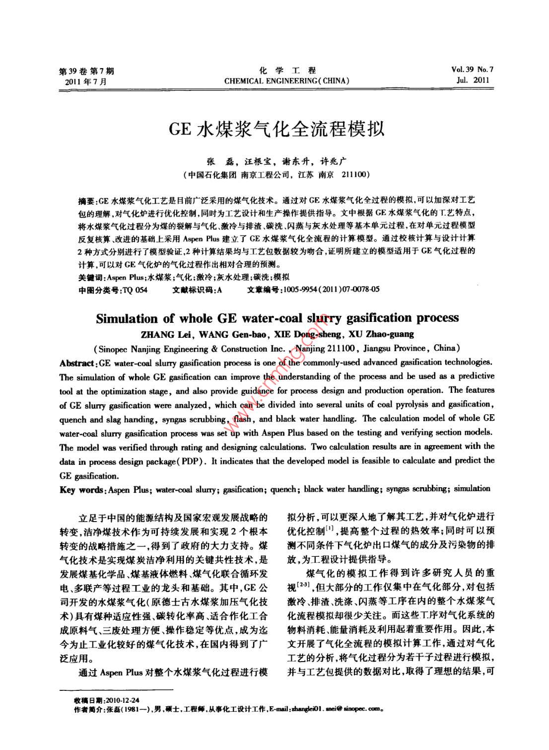 - 期刊名字:化學(xué)工程