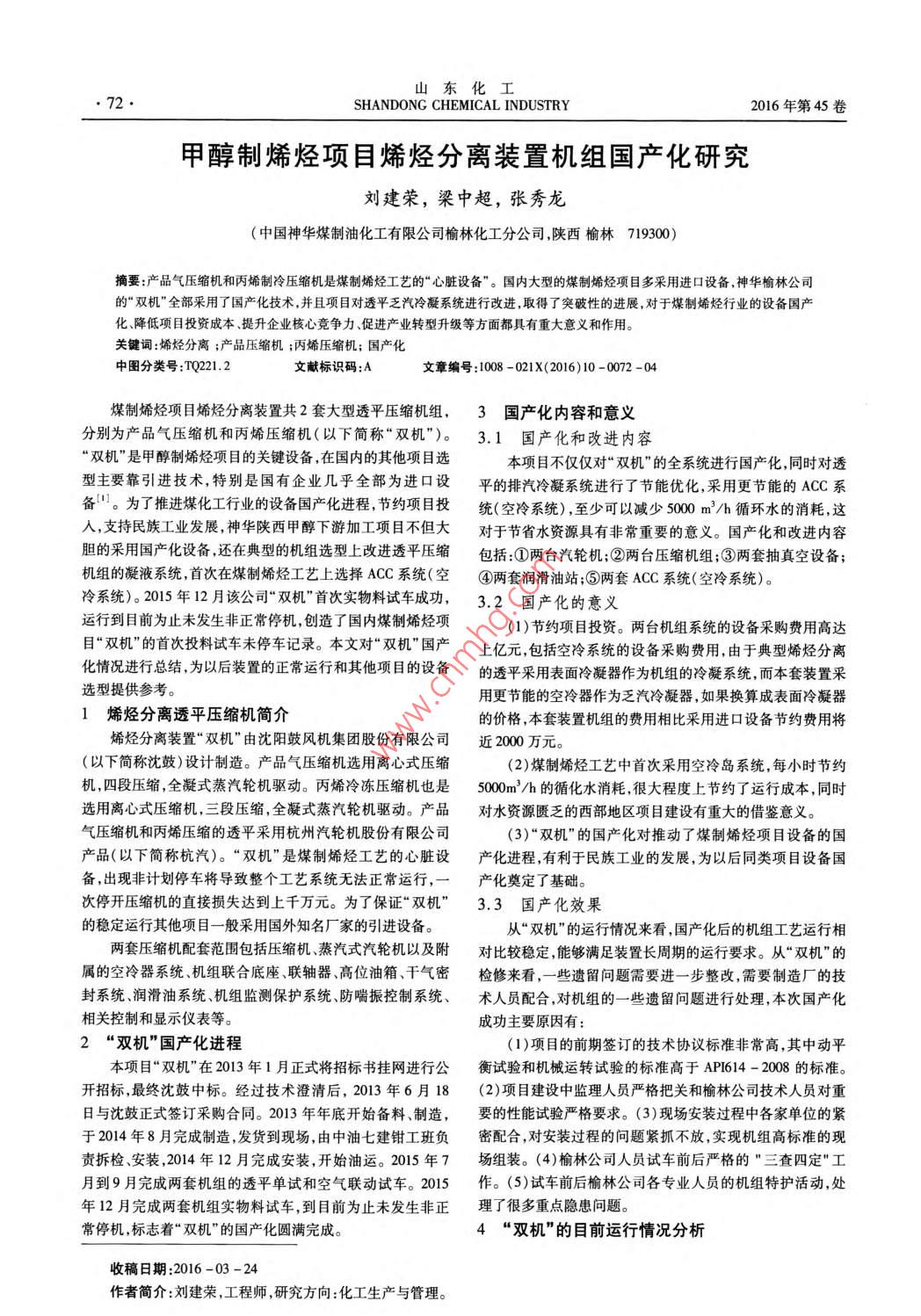 甲醇制烯烴項(xiàng)目烯烴分離裝置機(jī)組國(guó)產(chǎn)化研究