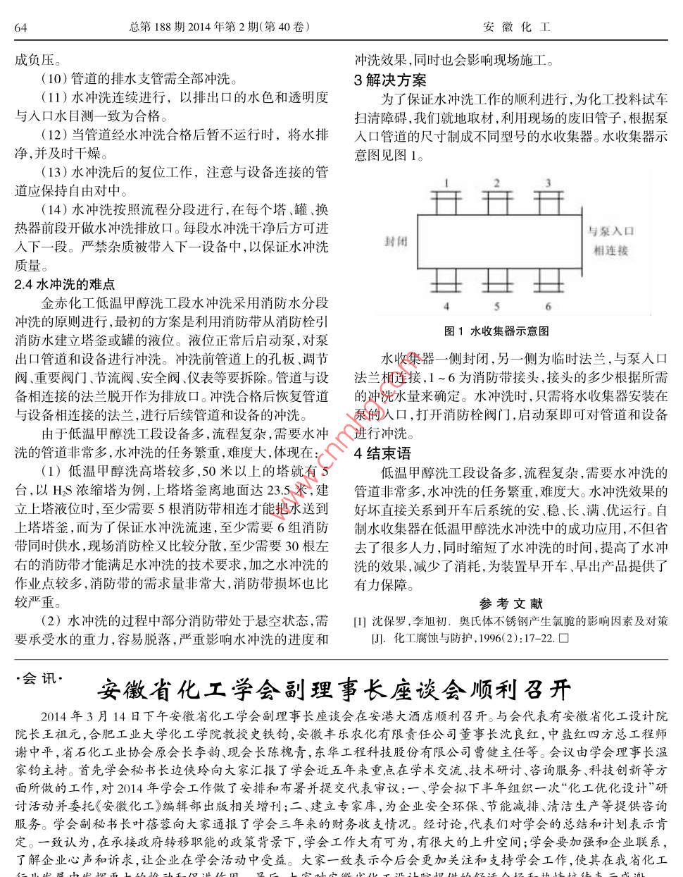 水收集器在低溫甲醇洗水沖洗中的應(yīng)用
