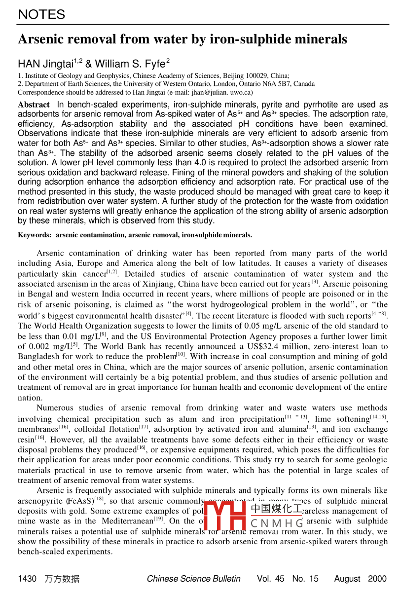 - 論文作者:HAN Jingtai,William S. Fyfe