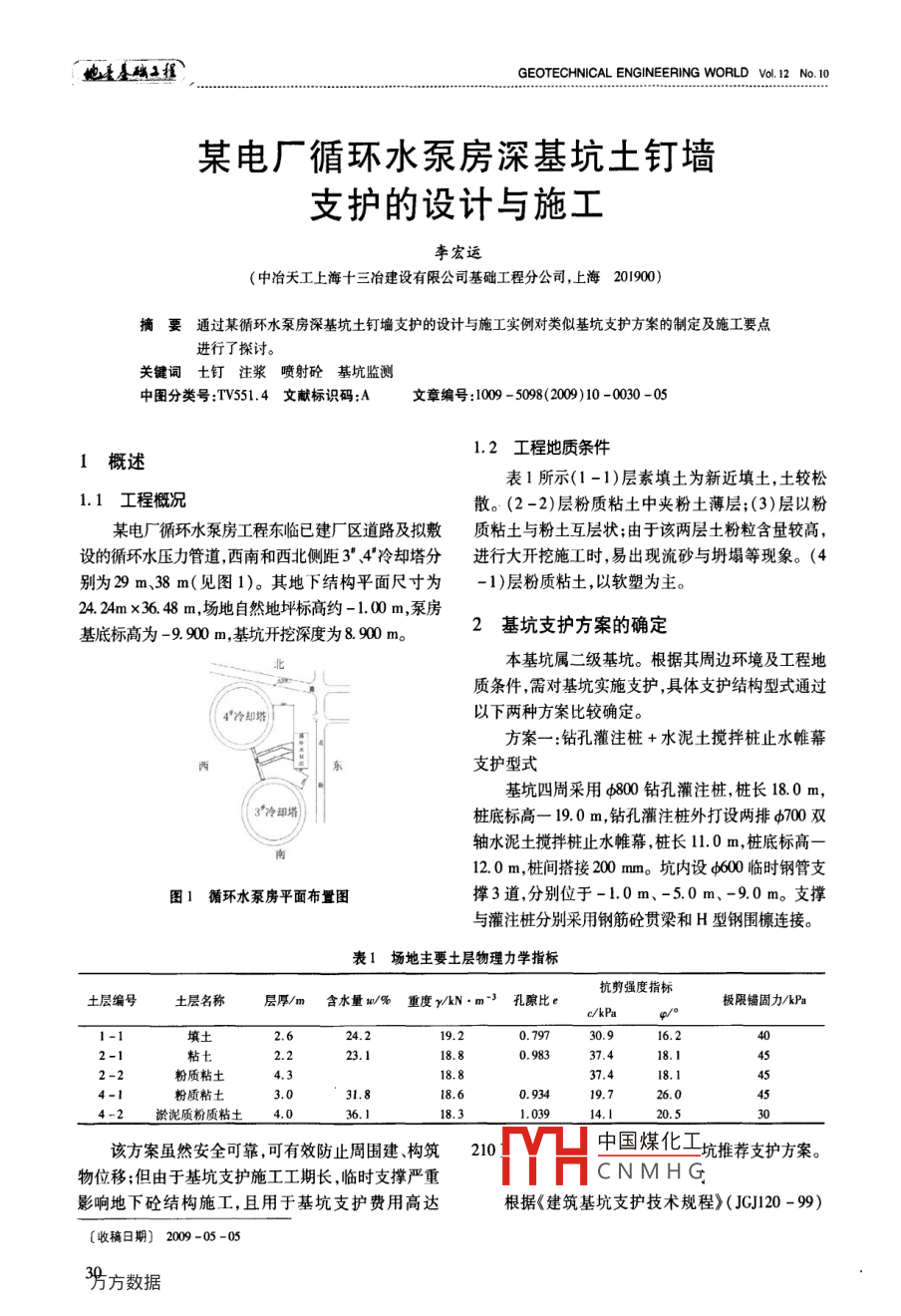 某電廠循環(huán)水泵房深基坑土釘墻支護(hù)的設(shè)計(jì)與施工