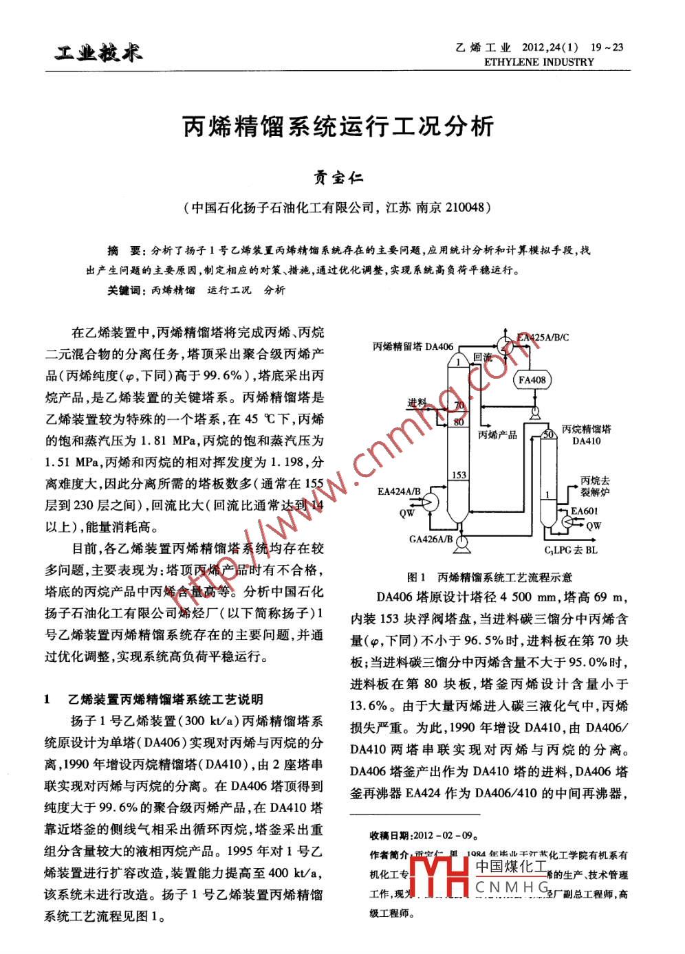 丙烯精餾系統(tǒng)運行工況分析