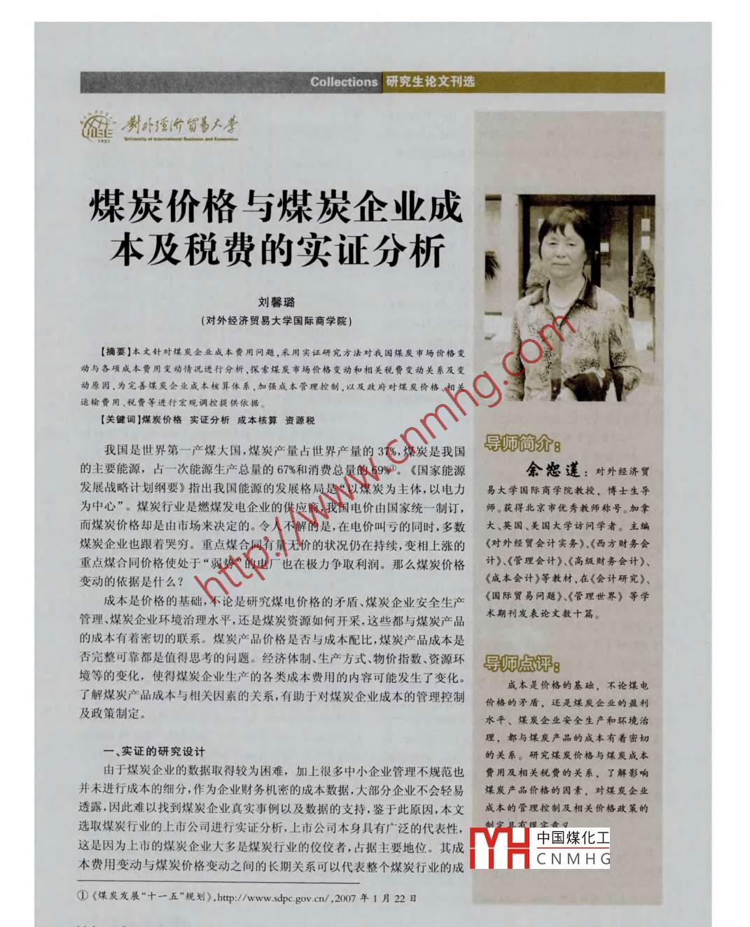 煤炭?jī)r(jià)格與煤炭企業(yè)成本及稅費(fèi)的實(shí)證分析