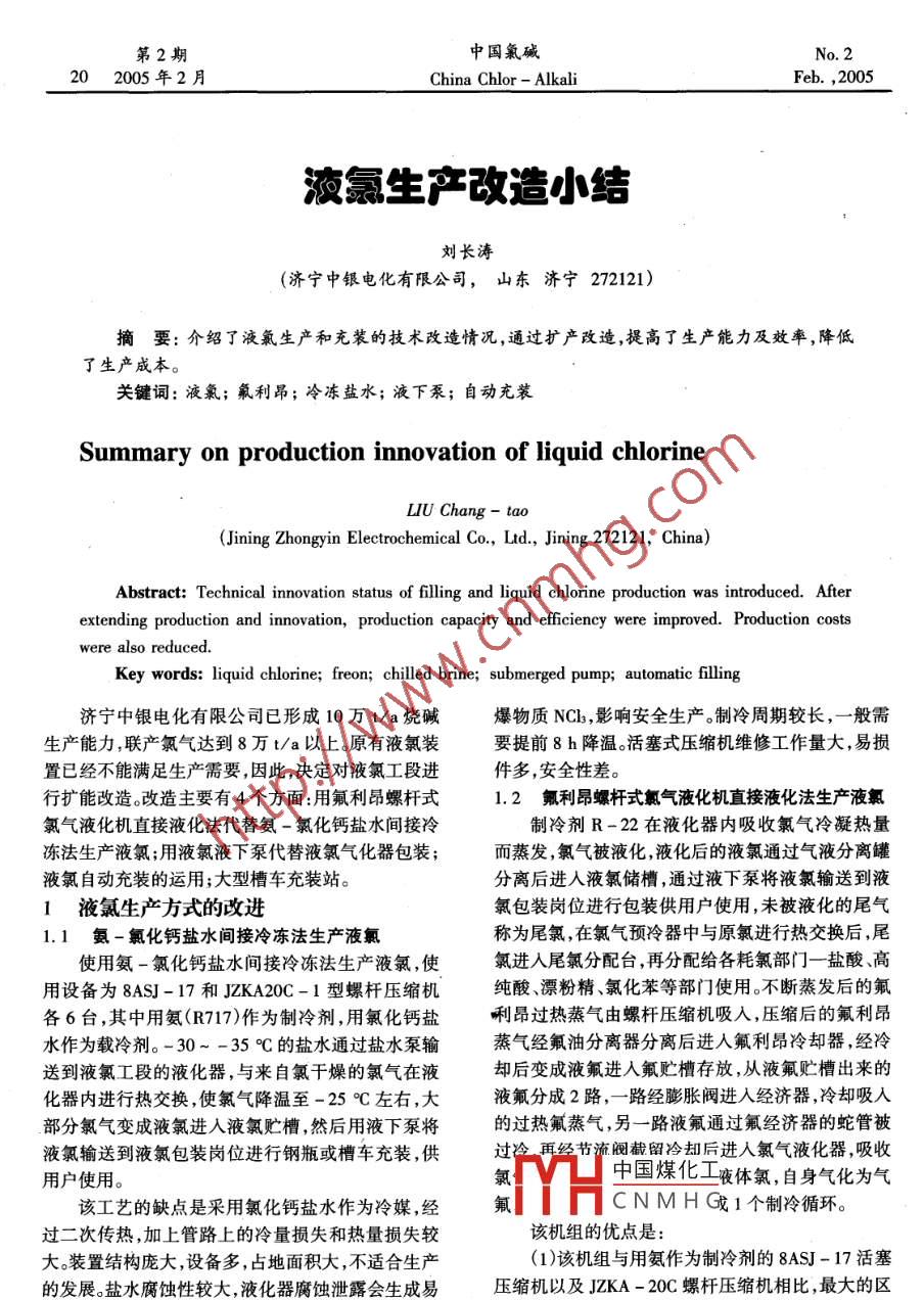 - 期刊名字:中國氯堿