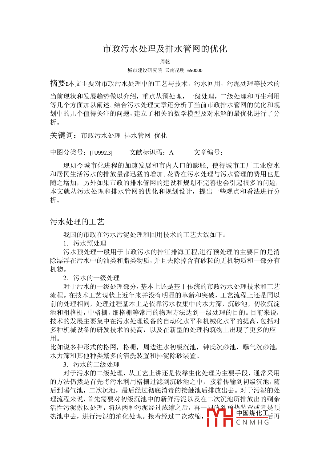 市政污水處理及排水管網(wǎng)的優(yōu)化
