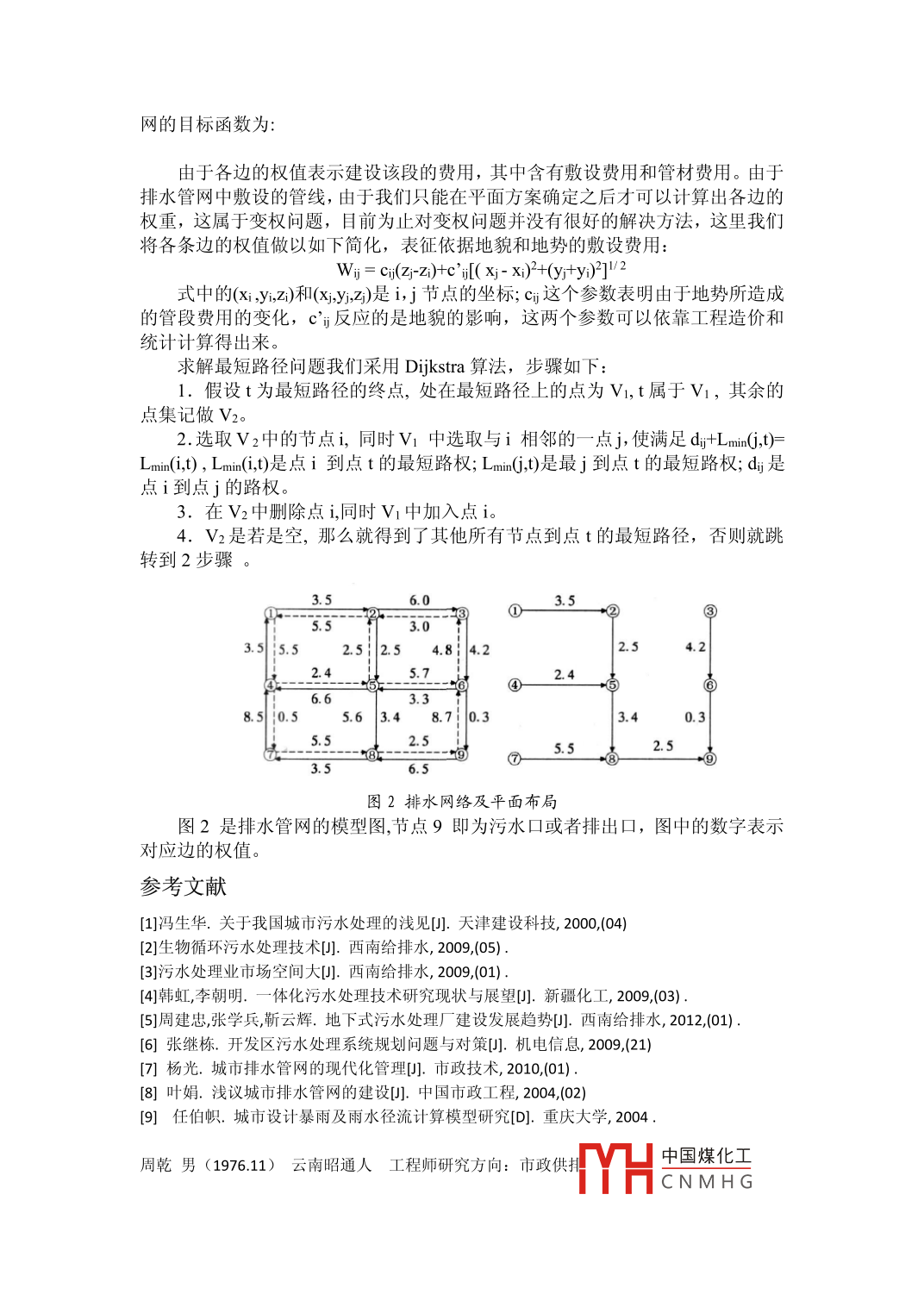 市政污水處理及排水管網(wǎng)的優(yōu)化周乾城市建設(shè)研究院云南昆明650000摘要:本文主要對市政污水處理中的工藝與技術(shù),污水回用,污泥處理等技術(shù)的當前現(xiàn)狀和發(fā)展趨勢做以介紹,重點從預(yù)處理,--級處理,二級處理和再生利用等幾個方面加以闡述。結(jié)合污水處理文章還分析了當前市政排水管網(wǎng)的優(yōu)化和規(guī)劃中的幾個值得關(guān)注的問題,建立了相關(guān)的數(shù)學模型及對求解的最優(yōu)化進行了分關(guān)鍵詞:市政污水處理排水管網(wǎng)優(yōu)化中圖分類號: [TU992.3]文獻標識碼: A文章編號:現(xiàn)如今城市化進程的加速發(fā)展和市內(nèi)人口的膨脹,使得城市工廠“工業(yè)廢水和居民生活污水的排放量都迅猛的增加?;ㄙM在污水處理與污水管理的費用也是隨之增加,另外如果市政的排水管網(wǎng)的建設(shè)和規(guī)劃不完善也會引起很多的問題,本文就從污水處理和排水管網(wǎng)的優(yōu)化和規(guī)劃設(shè)計,提出一些觀點和看法進行分析。污水處理的工藝我國的市政在污水污泥處理和回用技術(shù)的工藝大致如下:1.污水預(yù)處理污水預(yù)處理一般用于市政污水的排江排海工程,進行預(yù)處理的主要目的是消除漂浮在污水中的油類和脂類物質(zhì),并且去除掉含有砂粒的無機物質(zhì)和一部分有機物。2.污水的一級處理對于污水的一-級處理部分,基本上還是基于傳統(tǒng)的市政污水處理技術(shù)和工藝流程。在技術(shù)工藝現(xiàn)狀上近年來并沒有明顯的革新和突破,工藝流程上還是同以前的處理相同,處理過程基本上是依靠污水收集中的水力篩,沉砂池,初次沉淀池和粗格柵,中格柵,細格柵等常用的物理方法達到一級處理的目的。目前來說,技術(shù)的發(fā)展主要集中在污水處理設(shè)備的自動化水平和機械化水平的提高,包括對多種機械設(shè)備的研發(fā)技術(shù)的提高,以及在新型的處理構(gòu)筑物上出現(xiàn)了更多的應(yīng)用。比如說多種形式的格網(wǎng),格柵,周邊進水初級沉池,鐘氏沉砂池,曝氣沉砂池,水力篩和其他種類繁多的清洗裝置和排泥除砂裝置。3.污水的二級處理對于污水的二級處理,從工藝上講還是依靠生化處理為主要手段,通常采用的方法仍然是首先將污水利用格柵過濾到沉砂池之中,接著傳輸?shù)匠跫壋脸?,隨后到曝氣池,二次沉池,最后經(jīng)過徹底消毒的接觸池后排放出去。對于污泥的處.理流程來說,首先需要對初級沉池中的新鮮污泥以及在二次沉池所排放出的剩余活性污泥做以處理,將這兩種污泥經(jīng)過濃縮之后,再一同放到而執(zhí)裝罷或老是預(yù)熱池中去,進行污泥的消化處理。接著經(jīng)過二次濃縮,中國煤化化工后再YHCNMHG進到機械脫水機之中脫水,此時等待最后處理,既可以當作顆粒肥料,復(fù)合肥料也可以用作林肥,農(nóng)肥和填埋等處理。對于污水的處理工藝,既可以采用生物膜法,活性污泥法,也可以對各種處理方法進行工藝組合,這樣可以達到提高出水水質(zhì),減少基建費用,降低運行費用的目的,例如我國有些廠已經(jīng)開始采用兩段活性污泥法。另外也可以將生物膜法同活性污泥法聯(lián)合起來應(yīng)用,利用生物膜法的生物生長固定的特點和活性污泥法的液相和固相的接觸面積大,來提高處理效率。也有的采用生物化學處理方法,去氮除磷,達到對水體富營養(yǎng)化的防治的目的。最近國內(nèi)有很多污水處理廠都采用A2/0和A/O的處理工藝來應(yīng)付城市的污水。但是由于目前土地問題越來越突出了,采用物理化學法取代生化方法正被普遍的采用,這樣既達到了對氮,磷和.重金屬較好的處理效果又可以節(jié)省能源,減小污水處理廠所占用的面積,方便管理的自動化。4. 創(chuàng)新改善處理效果污水處理采用的技術(shù)的綜合性很強,涉及到相當廣泛的科學技術(shù)范圍,隨著生產(chǎn)科研領(lǐng)域的“飛速發(fā)展,傳統(tǒng)的技術(shù)工藝得以不斷的更新,新的流程和工藝技術(shù)用到了市政污水處理方面。對于分離技術(shù),目前采用的是固液分離旋轉(zhuǎn)式裝置,內(nèi)部采用高效氣浮技術(shù)和重力沉淀技術(shù)。對于生物膜法和活性污泥法的處理技術(shù),采取的主要是微孔曝氣技術(shù),生物接觸氧化,生物濾池,生物轉(zhuǎn)盤,射流曝氣,噴射曝氣等技術(shù)。5.污水的再生利用技術(shù)采用污水的再生利用技術(shù),不但能夠減低污水的排放量,減輕對環(huán)境造成的污染,而且能夠節(jié)約水資源,緩解水源缺乏的矛盾。對于我國來說,人均水資源僅有世界人均占有量的1/4,處于極度缺乏的狀態(tài),很多地區(qū)和城市嚴重缺水。為了解決這個問題,降低污水的排放量,我們在個別地區(qū)進行污水回用的規(guī)劃和試驗研究,建立試點工程。技術(shù)上,在污水二級處理廠的基礎(chǔ)上做污水回用的水質(zhì)處理,或者可以把二級處理后的水重新用于工業(yè),比如說用作煉鋼的冷卻水使用。此處理流程基本上是把二級處理后的出水經(jīng)過加藥,混凝,沉淀過濾,消毒等處理工藝,這種工藝是市政自來水廠成熟可靠的老三套工藝?;谖覀儑液芏嗟貐^(qū)嚴重缺水的事實,將污水回用成我們的第二水源,對廢水的再生和回用做以積極地開發(fā),這將是解決問題的重要途徑。污水處理的發(fā)展趨勢我國的污