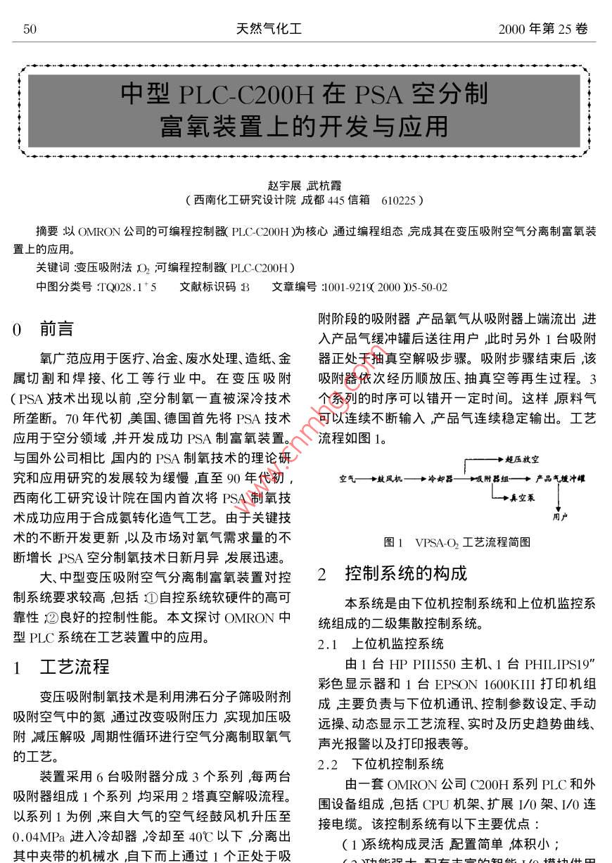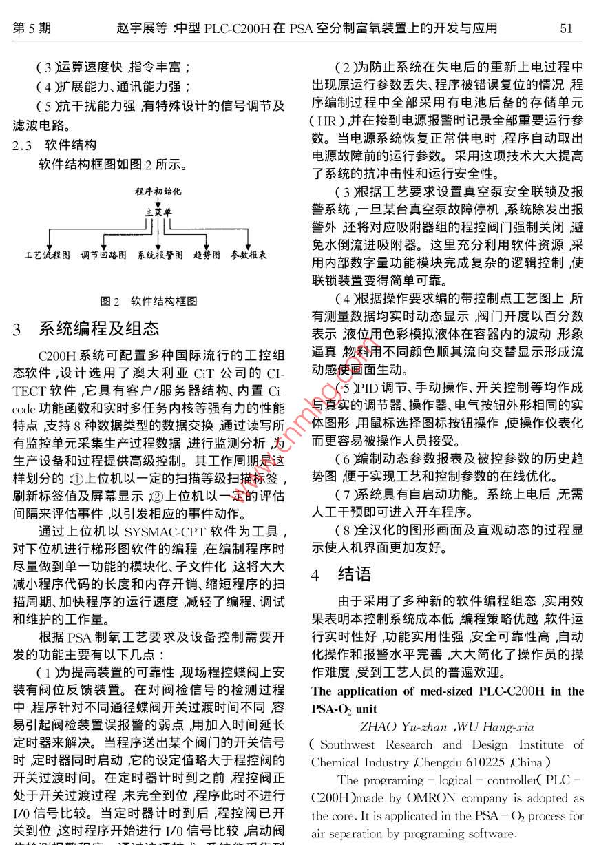 中型PLC-C200H在PSA空分制富氧裝置上的開發(fā)與應用
