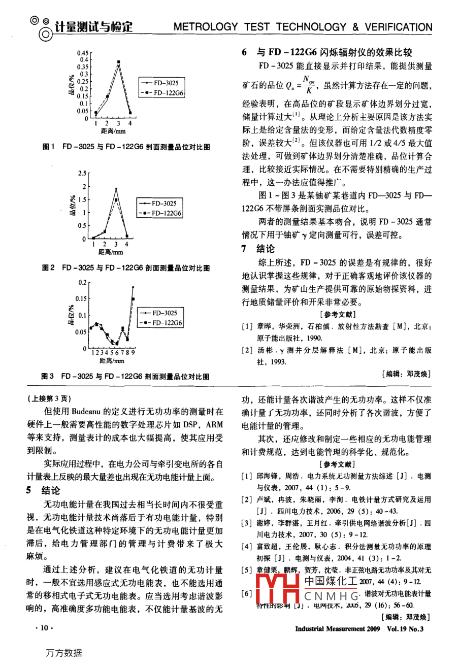 ETROLOGY TEST TECHNOLOGY VERIFICATION計(jì)量測(cè)試與輜定⊙電氣化鐵道對(duì)無(wú)功電能計(jì)量影響的研究閔永智,劉禾2,李曉東(1.蘭州交通大學(xué)自動(dòng)化與電氣工程學(xué)院,蘭州730070;2.安康供電局,陜西安康725000)[摘要]電氣化鐵道為電網(wǎng)注入了大量諧波電流,降低了電網(wǎng)電能質(zhì)量。而目前諧波對(duì)無(wú)功電能表計(jì)量特性影響的研究還不完善。文章在傳統(tǒng)無(wú)功功率定義的基礎(chǔ)上,按照 C Judean頻域法,給出諧波下非正弦無(wú)功功率的定義,并且比較了電氣化鐵道中諧波對(duì)目前無(wú)功計(jì)量?jī)煞N電能表的準(zhǔn)確度影響,給出了電氣化鐵道中無(wú)功電能表的選擇原則。[關(guān)鍵詞]電氣化鐵道;諧波;無(wú)功;計(jì)量中圖分類號(hào)]TM33[文獻(xiàn)標(biāo)識(shí)碼]B[文章編號(hào)]1002-1183(200)03-001-04Study of Influence of Electric Railway on Measurement ofReactive Electric energyMIN Yong-zhi, LIU He, LI Xiao-dong(1. School of Automation and Electrical Engineering, Lanzhou Jiaotong University, Lanzhou 730070, China; 2. Ankang Supply Bureau)Abstract: In electric railway, a vast amount of harmonic current has been injected into electric grid, and power quality has beenreduced. At present, research of influence of harmonics on measurement performance of reactive electric energy meter is imper-fect. Based on definition of traditional reactive power, definition of nonsinusoidal reactive power is provided according toC. Budeanu frequency domain method. Inpluence of electric railway harmonic on two kinds of reactive electric energy meter in mar-ket is compared. Finally, selection principle of reactive electric energy meter in elcetric railway is proposedKey words: electric railway harmonic; reactive power; measurement無(wú)功電能的傳輸將直接降低發(fā)電機(jī)出力和變壓系統(tǒng)導(dǎo)致系統(tǒng)電能質(zhì)量惡化。因此電氣化鐵道的無(wú)器、線路的有功電能傳送能力,并增加線路、變壓器功電能計(jì)量有其特殊性。損耗、降低電壓等,諧波的存在將進(jìn)一步加劇無(wú)功電但目前在諧波環(huán)境下電能計(jì)量方面的主要研究工能計(jì)量的這些負(fù)面作用,諧波還會(huì)降低幾乎所有電力作是有功電能的計(jì)量,已提出了時(shí)域、頻域、轉(zhuǎn)盤阻設(shè)備和負(fù)載的運(yùn)行效率、壽命等。此外,無(wú)功電能計(jì)抗、磁路分析、自制動(dòng)力矩等分析方法;而針對(duì)無(wú)功量還通過功率因數(shù)直接影響計(jì)費(fèi),直接影響負(fù)荷預(yù)的研究工作還處于探索階段。測(cè)、無(wú)功電源規(guī)劃等,是技術(shù)經(jīng)濟(jì)分析的基礎(chǔ)。因此本文首先給出了電氣化鐵道的諧波特性,然后從無(wú)功電能計(jì)量非常重要。理論上分析了各種常用無(wú)功電能表的移相誤差,并根電氣化鐵道具有牽引重量大、速度快、節(jié)約能據(jù)目前諧波條件下的無(wú)功電能計(jì)量存在缺陷,給出了源、對(duì)環(huán)境污染小等優(yōu)點(diǎn),電力牽引已成為中國(guó)鐵路適宜于電氣化鐵道無(wú)功電能計(jì)量的方式。發(fā)展的主要方向。但由于電氣化鐵道中電力機(jī)車為波1電氣化鐵道的供電方式及負(fù)荷特點(diǎn)動(dòng)性很大的大功率單相整流負(fù)荷,對(duì)于三相對(duì)稱的電1.1供電方式力系統(tǒng)供電來說,電氣鐵道牽引負(fù)荷具有非線性、不電氣化鐵道供電方式主要有:直接供電方式;帶對(duì)稱和波動(dòng)性特點(diǎn),將產(chǎn)生三相不平衡的諧波電流注回流中國(guó)煤化工壓器(BT)供電方[收稿日期]2008-10-27CNMHG[基金項(xiàng)目]甘肅省自然基金(3ZB082-B25-031)蘭州交大科研基金(20710)[作者簡(jiǎn)介]閔永智(1975-),男,陜西城固人,講師,博十生,主要從事電氣測(cè)試與傳動(dòng)研究工業(yè)計(jì)量200年第19卷第3期9g計(jì)量測(cè)試與定METROLOGY TEST TECHNOLOGY & VERIFICATION式;自耦變壓器(AT)供電方式;三相-兩相斯科特(Scot)變壓器接線;阻抗匹配平衡變壓器接74(2o)(-)d線等。近年來,我國(guó)電氣化鐵道多單相接線(多數(shù)為u(oi(t-t)de22l,0部分為1l0V)和三相V,V接線(1lyv)式中:a為角速度,T為電網(wǎng)周期,t為時(shí)間。進(jìn)行供電。其中單相接線以其容量利用率最高、接線測(cè)量時(shí):先通過采樣和AD轉(zhuǎn)換將電網(wǎng)的模擬簡(jiǎn)潔、有利于提速等因索成為優(yōu)先考慮的接線型式,電壓和電流信號(hào)采集到微處理器,然后進(jìn)行離散化處但其負(fù)序影響較大,往往需要采用更高電壓等級(jí)。當(dāng)理。這里假設(shè)對(duì)每個(gè)周期的電壓和電流采樣N次,則牽引負(fù)荷較重(如高速鐵路)時(shí),負(fù)序影響又較大,式(1)離散化得對(duì)電力系統(tǒng)供電能力要求較高,一般采用220kV供電(21。uAk+A1.2負(fù)荷特點(diǎn)式中:4是第k個(gè)電壓采樣值,讠,÷是第k+N4個(gè)由于電力機(jī)車的整流調(diào)速裝置采用晶閘管技術(shù),電流采樣值。這樣,只要對(duì)電流和電壓進(jìn)行較高頻率因而運(yùn)行中的電力機(jī)車在吸收電網(wǎng)功率的同時(shí)又將產(chǎn)的采樣,就能根據(jù)式(3)求得無(wú)功功率。生高次諧波并將諧波注入電網(wǎng),嚴(yán)重時(shí)遠(yuǎn)超過國(guó)家標(biāo)移相法在電壓電流諧波含量較低的情況下能達(dá)到準(zhǔn)規(guī)定的指標(biāo)。再者,為了減少牽引網(wǎng)單相供電的不較高的準(zhǔn)確度,最主要的缺點(diǎn)是在