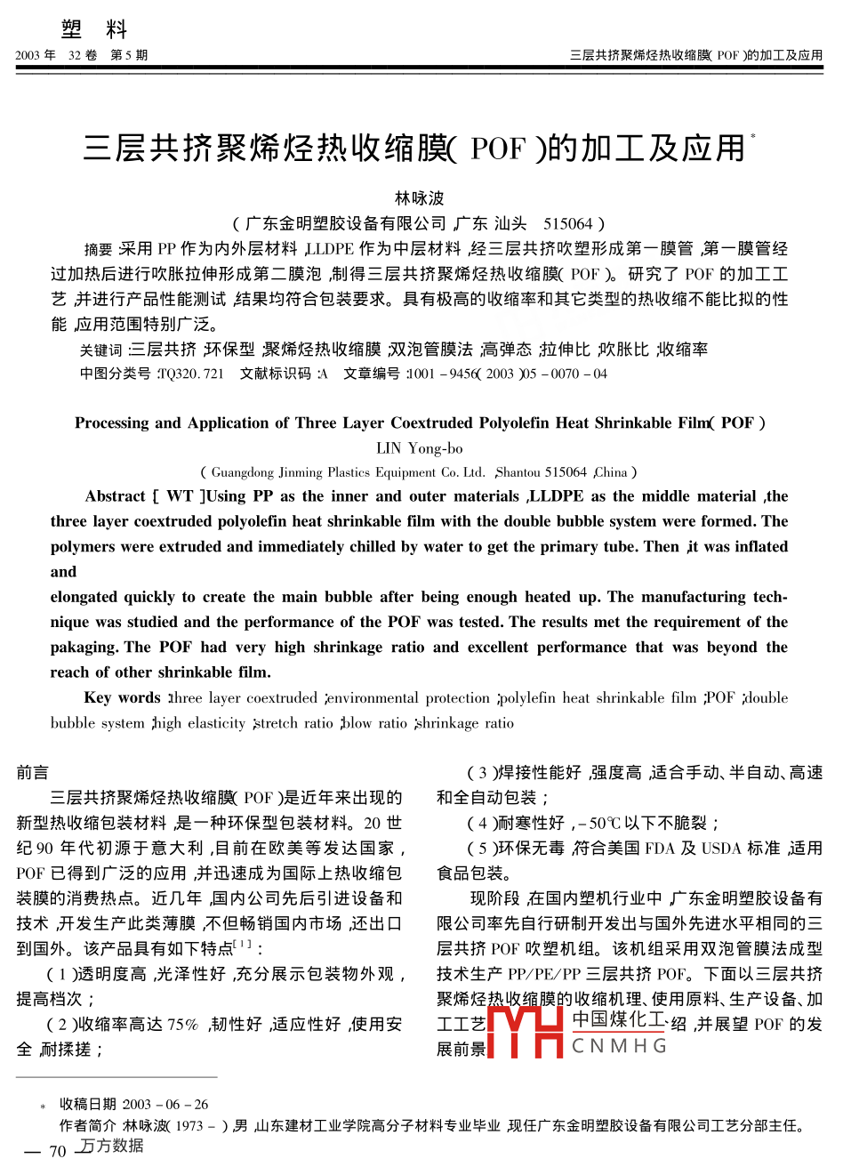 三層共擠聚烯烴熱收縮膜(POF)的加工及應(yīng)用