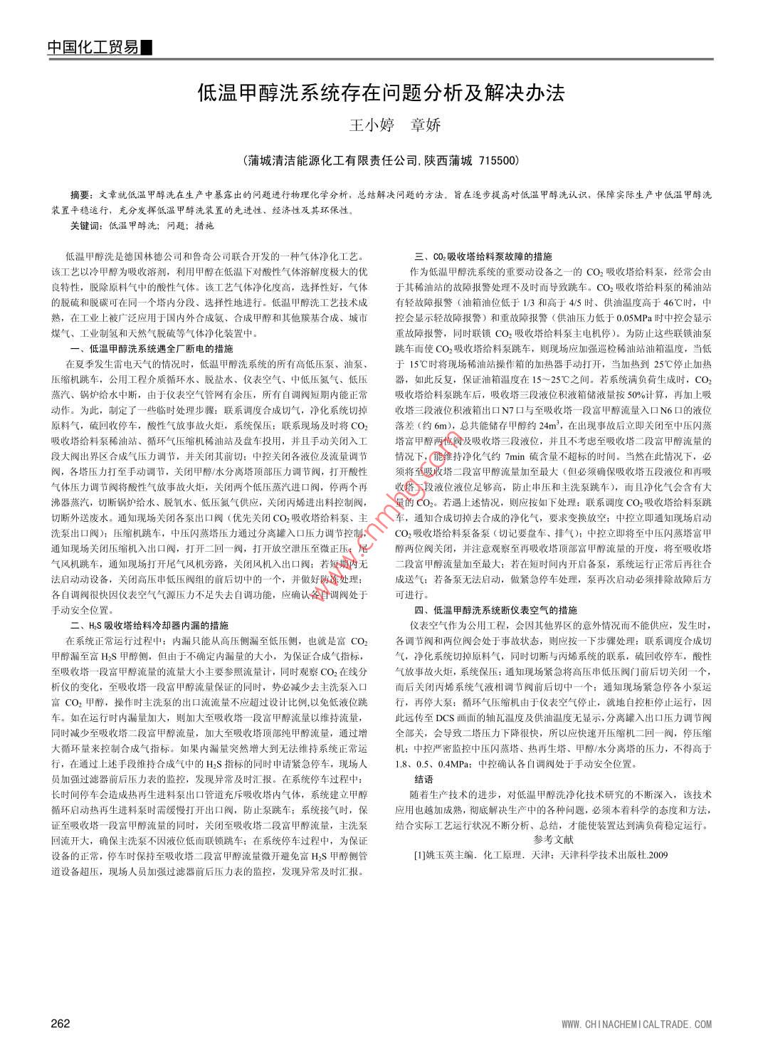 低溫甲醇洗系統(tǒng)存在問(wèn)題分析及解決辦法