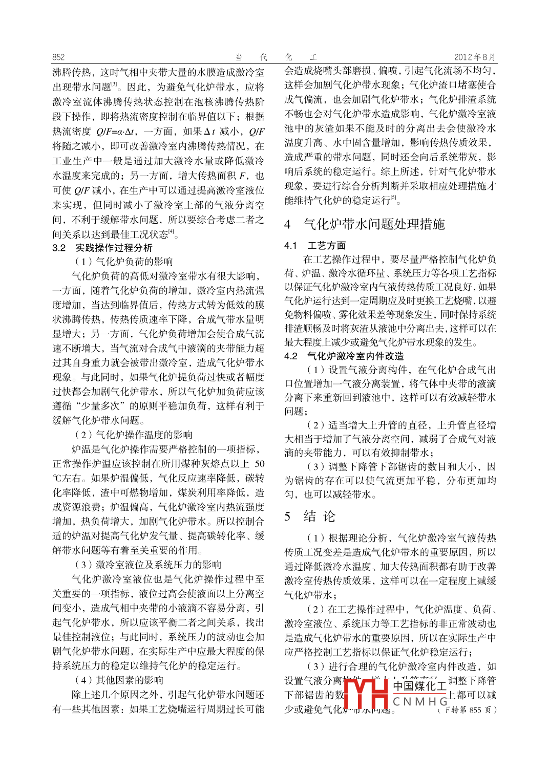 Texaco 煤氣化爐帶水問題的分析與探討