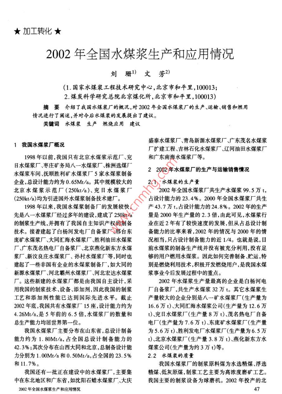 - 作者單位:國(guó)家水煤漿工程技術(shù)研究中心,煤炭科學(xué)研究總院北京煤化所
